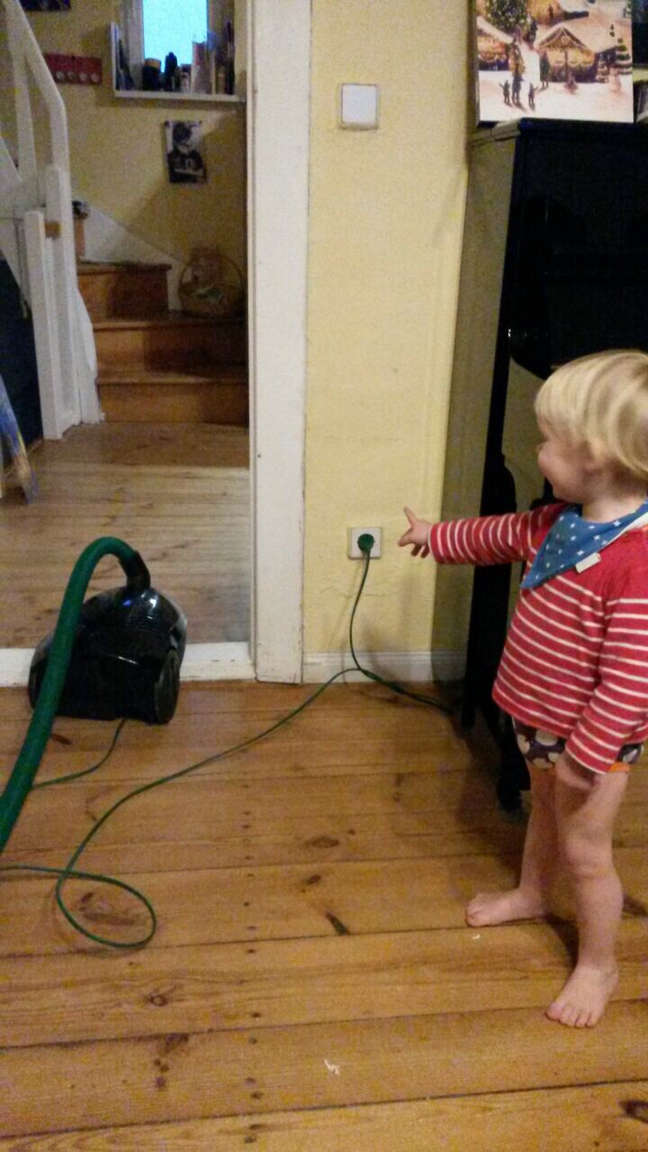 [folienstern:] „Ach, kleiner Junge, kannst Du bitte den Staubsauger stehenlassen?“