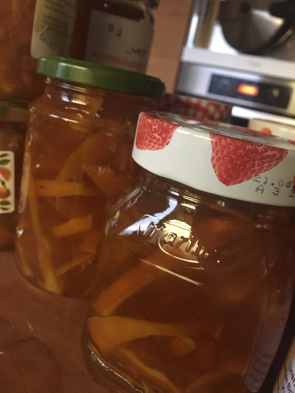 [folienstern:] „Oh je, so viele Orangen noch über. Ich mach‘ besser mal Marmelade.“