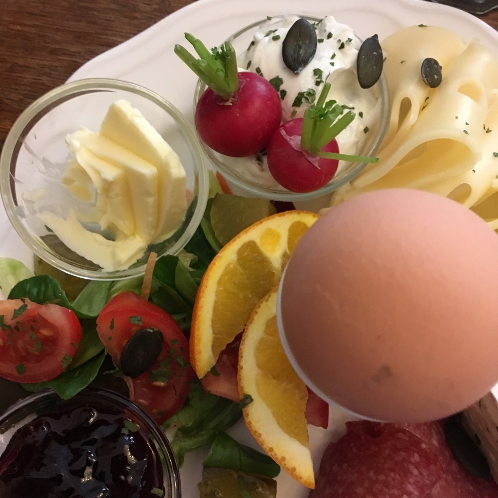 [Kollegin fotografiert ihr Frühstück in dem wunderbaren Kaffee26. folienstern:] „Ach, warte mal, das mach ich auch, für #12von12.“
