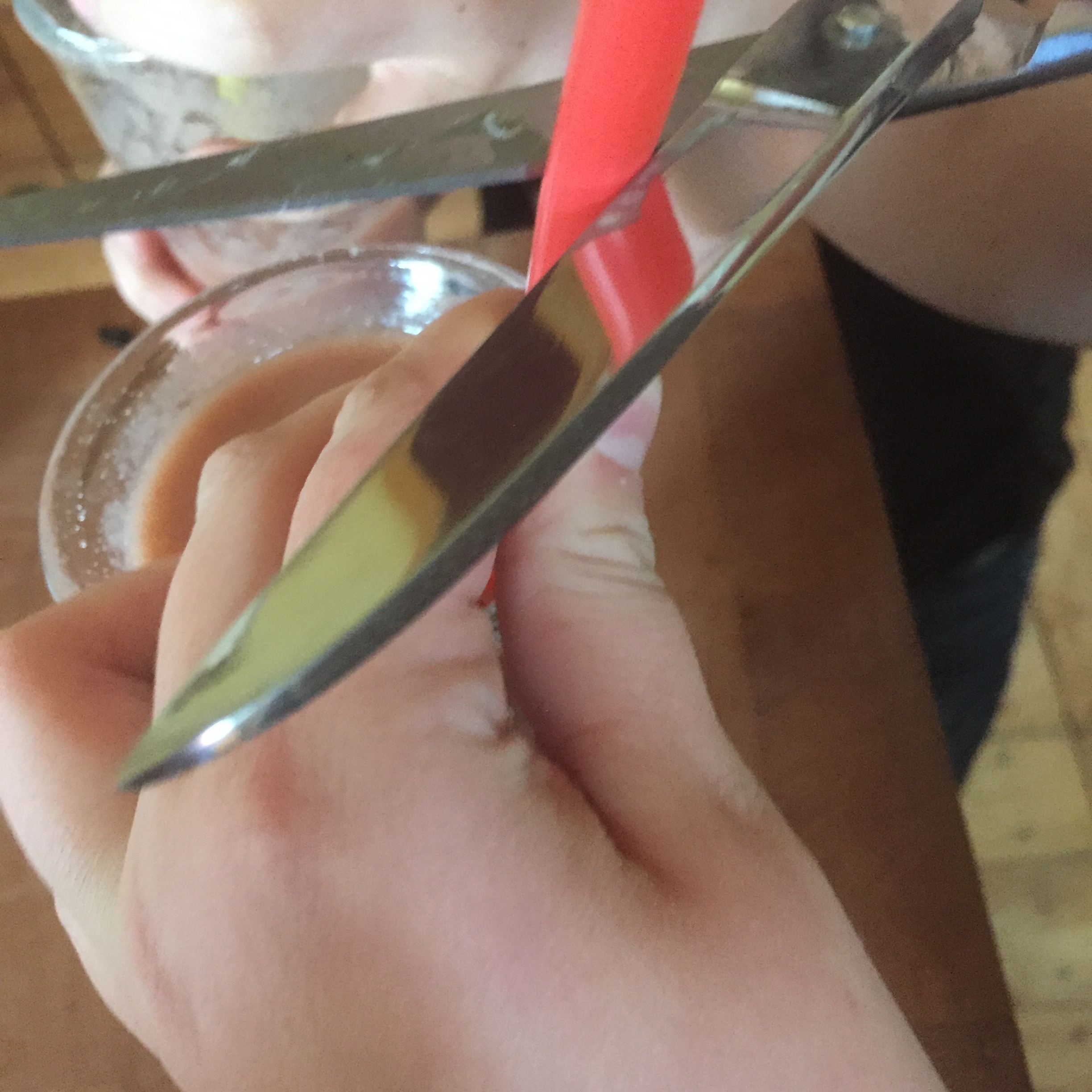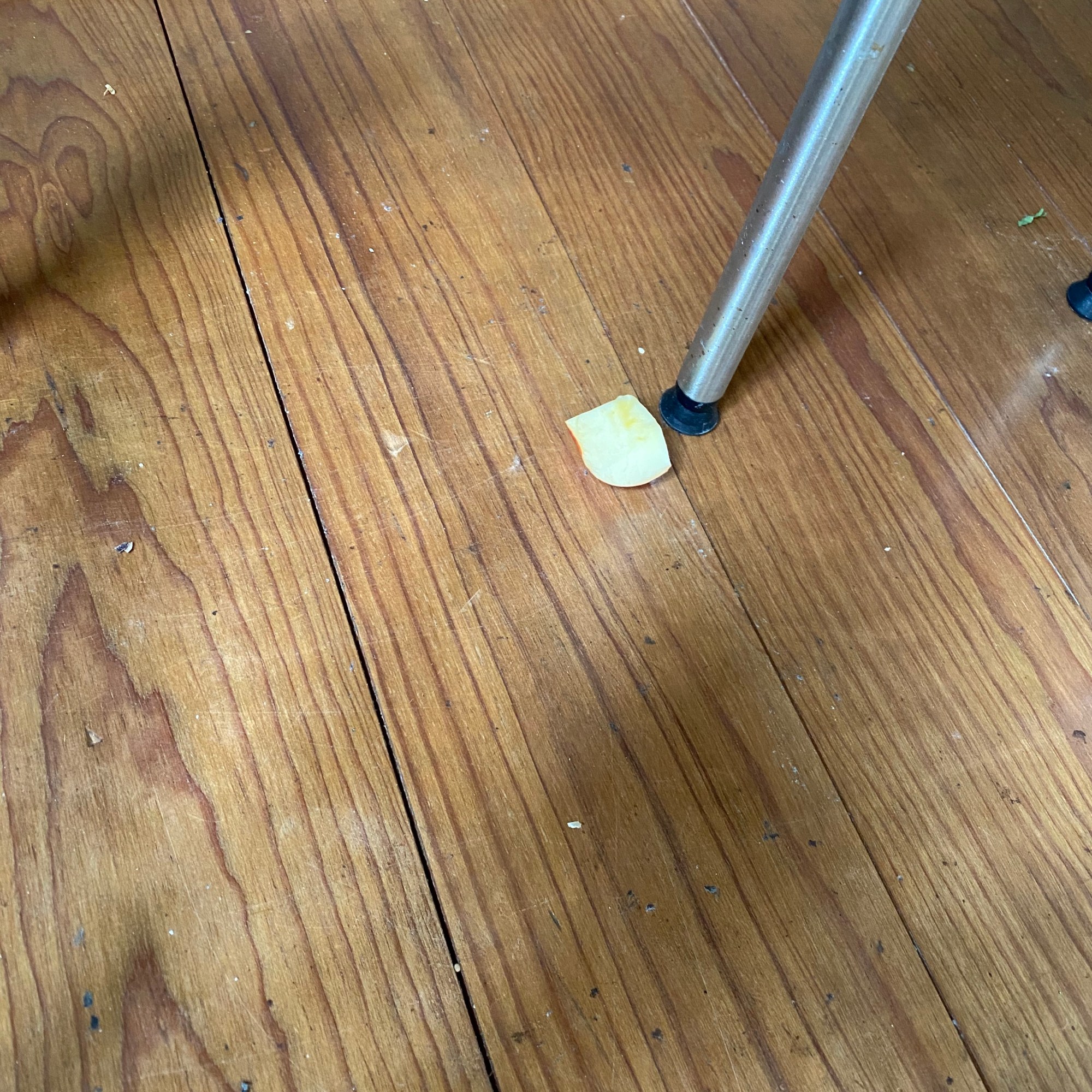[Kurz darauf. kneteeis:] „Kannst Du bitte das einzelne Apfelstück da aufheben? Das soll noch mit ins Apfelmus.“