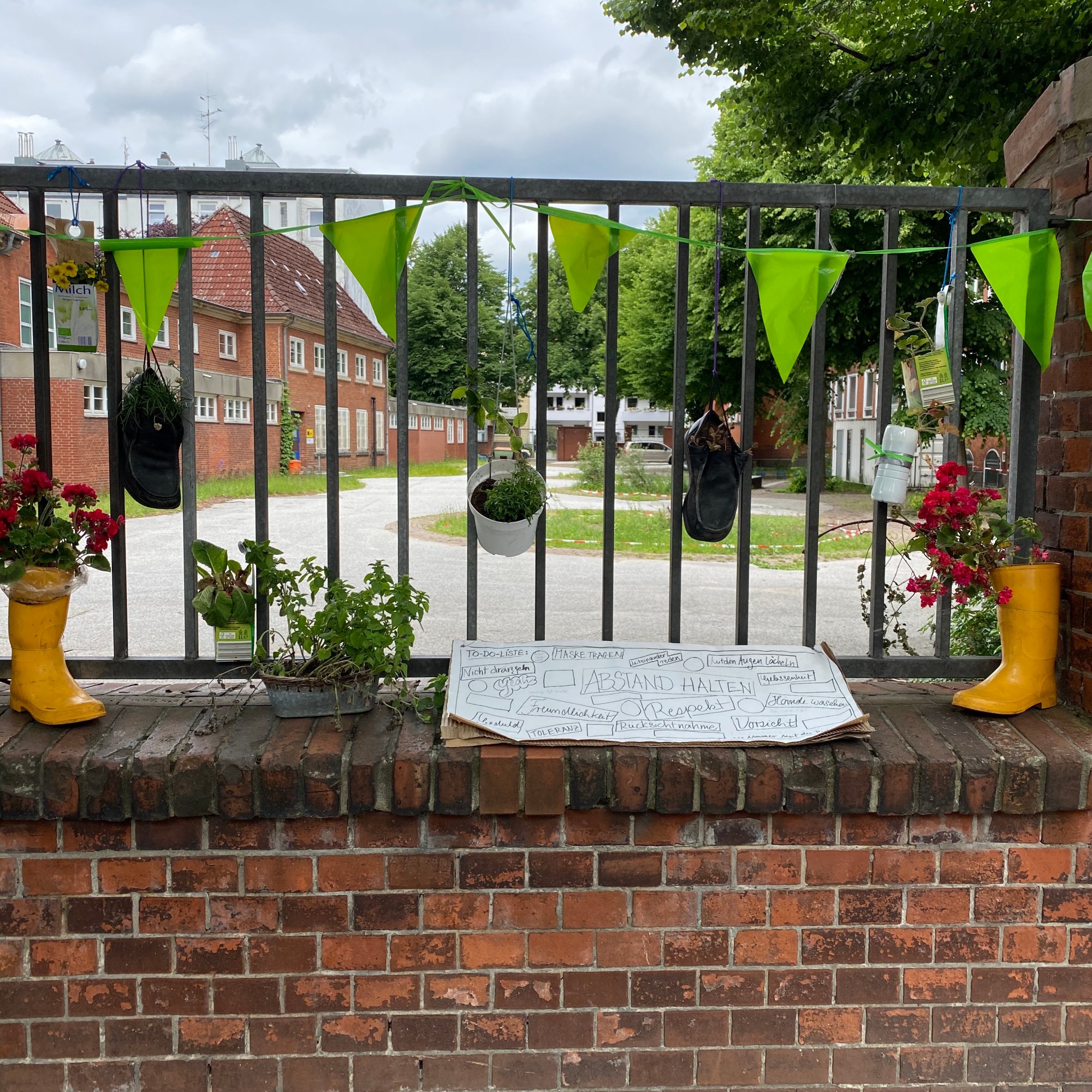[kneteeis:] „Guck‘ mal, da haben irgendwelche Nachbarn den Zaun an der Schule dekoriert – das hatte ich noch gar nicht gesehen!“