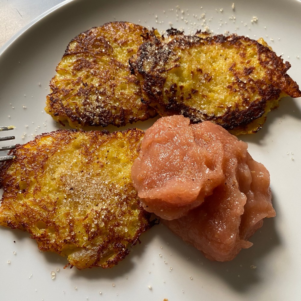 [kneteeis:] „Großer Junge, die Kartoffelpuffer sind fertig!“