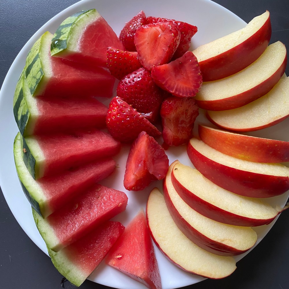 [kneteeis:] „Äpfel, Melone und Erdbeeren.“