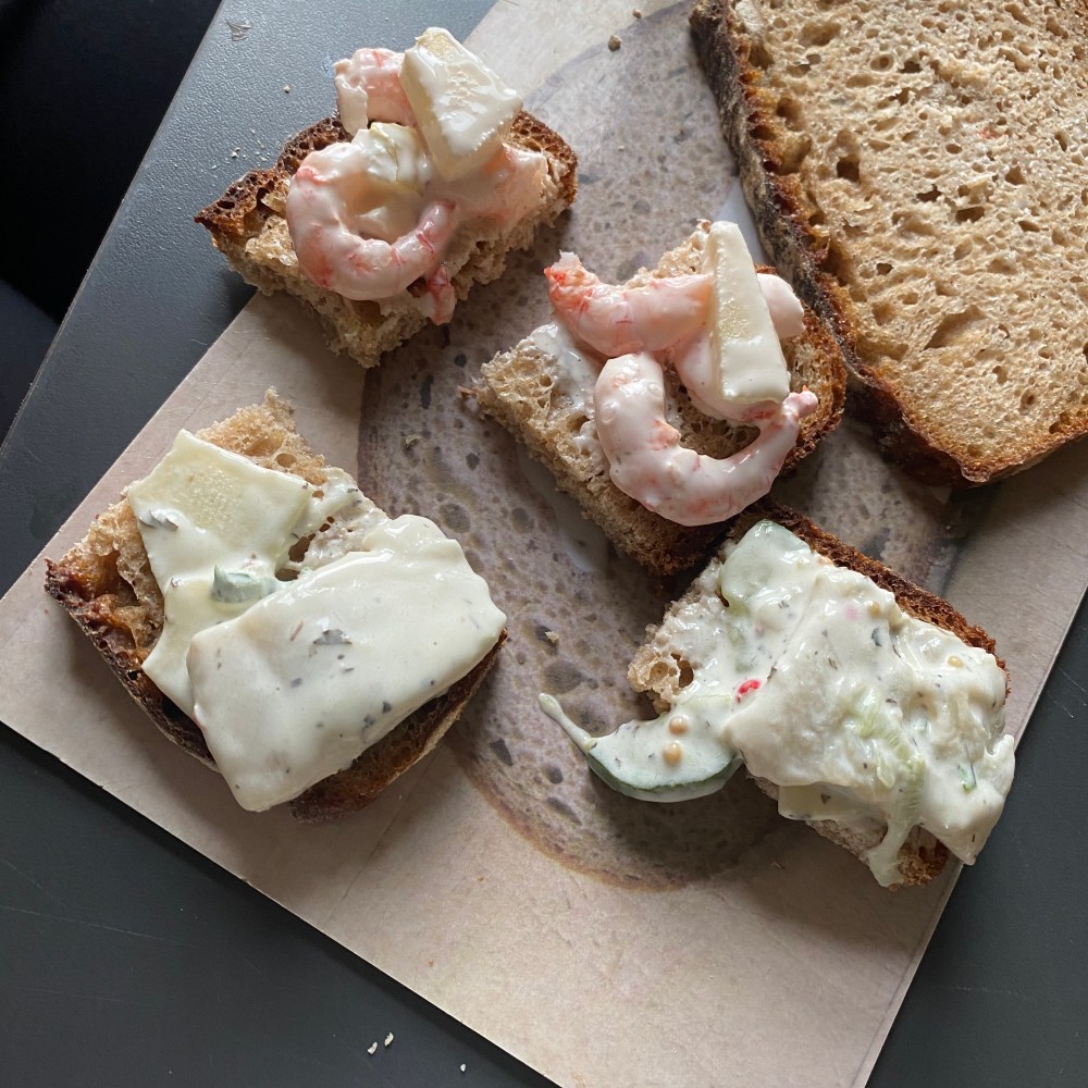 [kneteeis:] „Dann machen wir uns einfach Brot mit dem neuen Fischsalat, okay? Der Fischmann bei Edeka hat mir zwei neue Salate zum Probieren mitgegeben.“