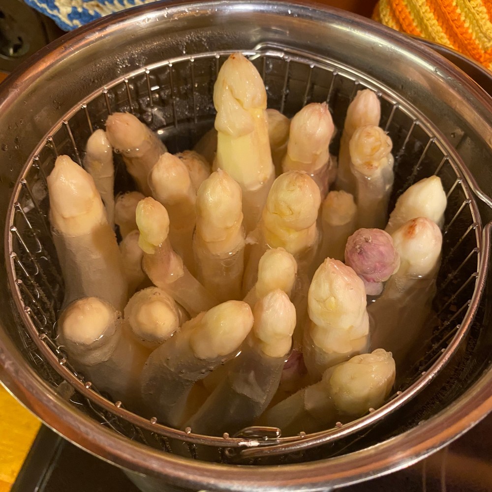 [Etwas später. GJ:] „Hihi, wenn man den Spargel rausnimmt, sieht das aus, als ob er im Gefängnis sitzt!“
