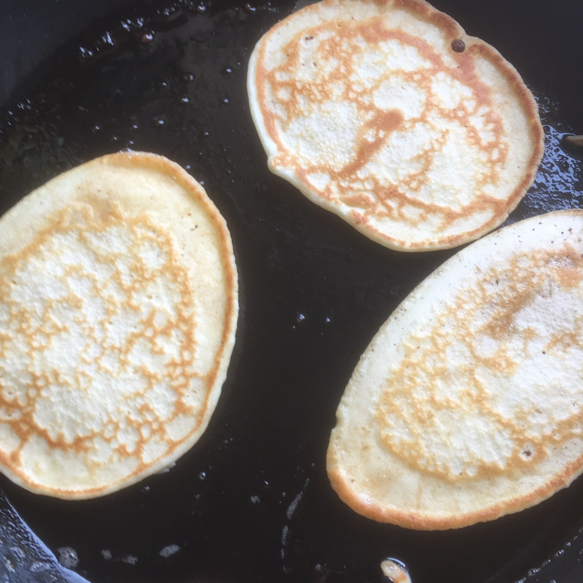 [KM:] „Lecker!!! Aber wir haben nur 4 Teller. Will Papa keine Pfannkuchen?“