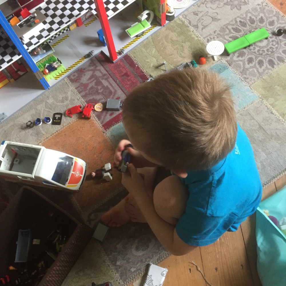 [KJ:] „Mama! Du hast das weggeräumt, was ich brauche! Die müssen doch hier einziehen die alle! So, jetzt ist die Schlange fertig.“
