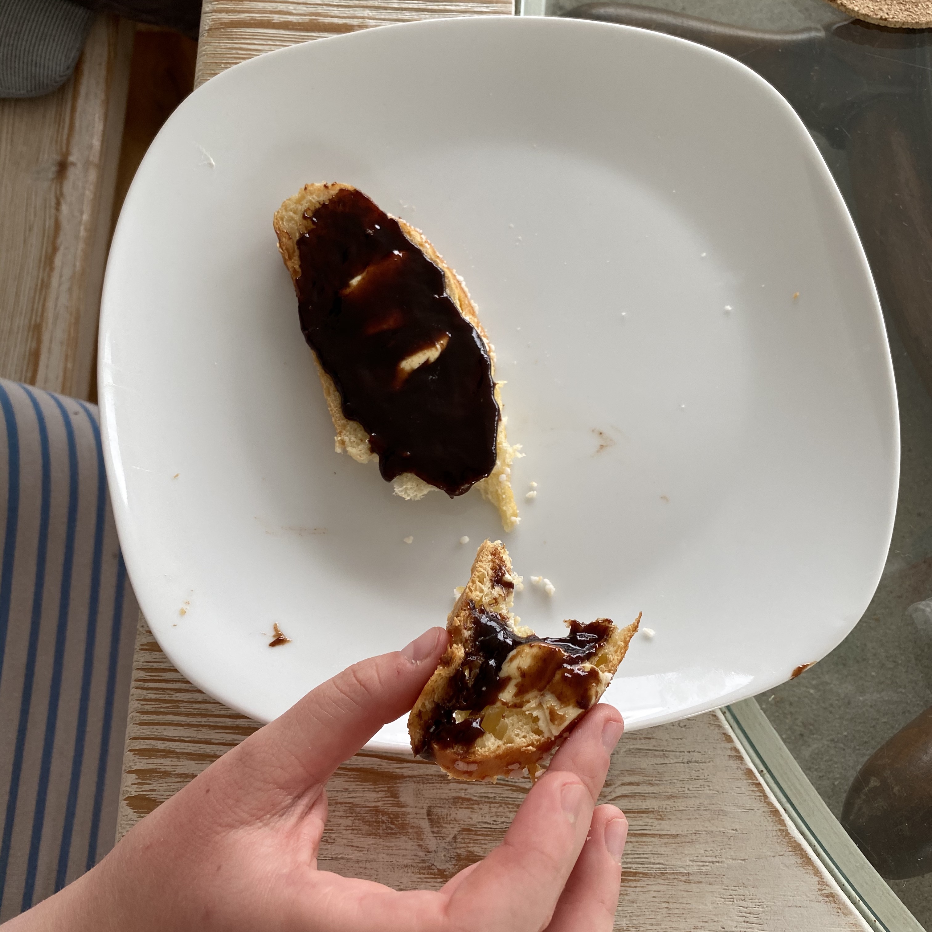 [KM:] „Ich auch mit Pflauemmus. aber ohne Butter.“