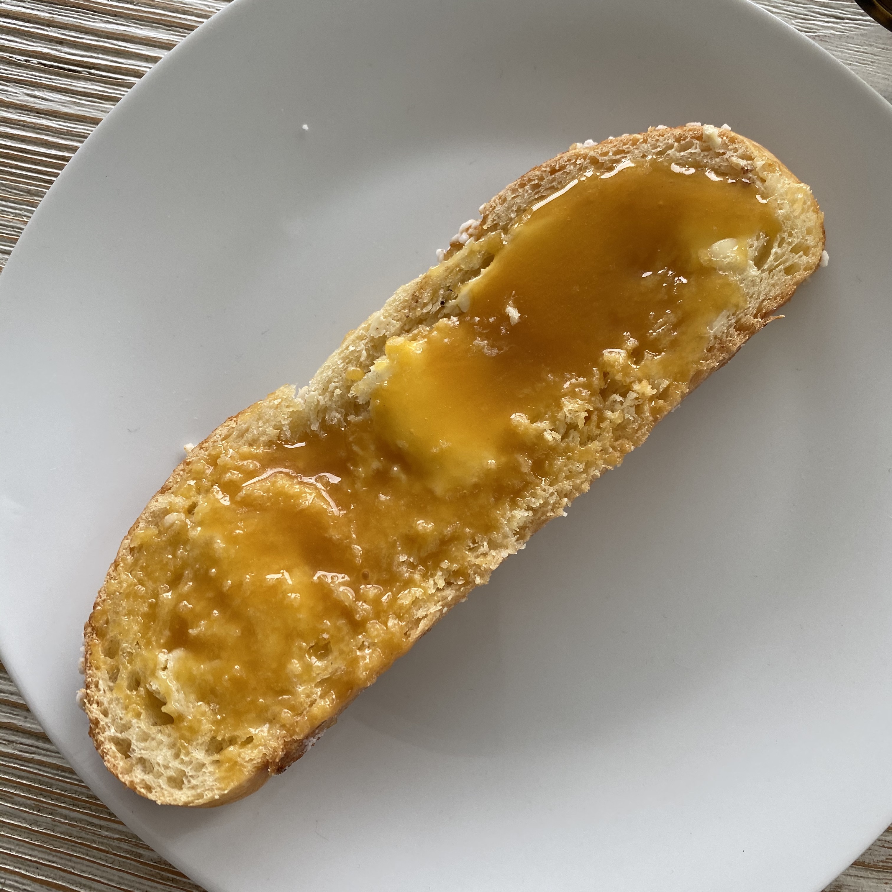 [GJ:] „Mit Pflaumenmus, aber ohne Butter.“