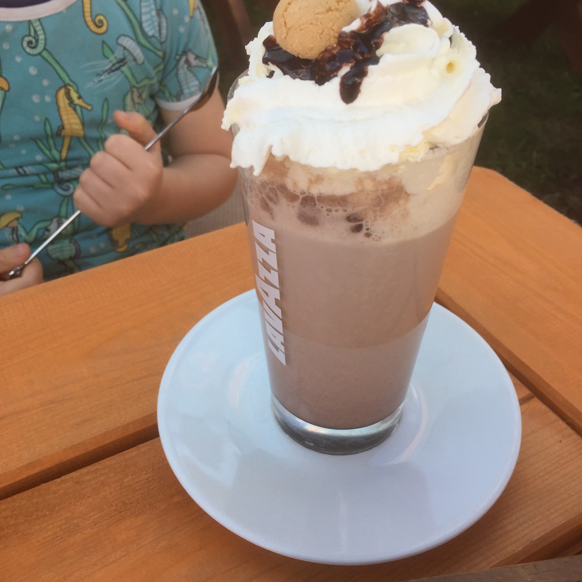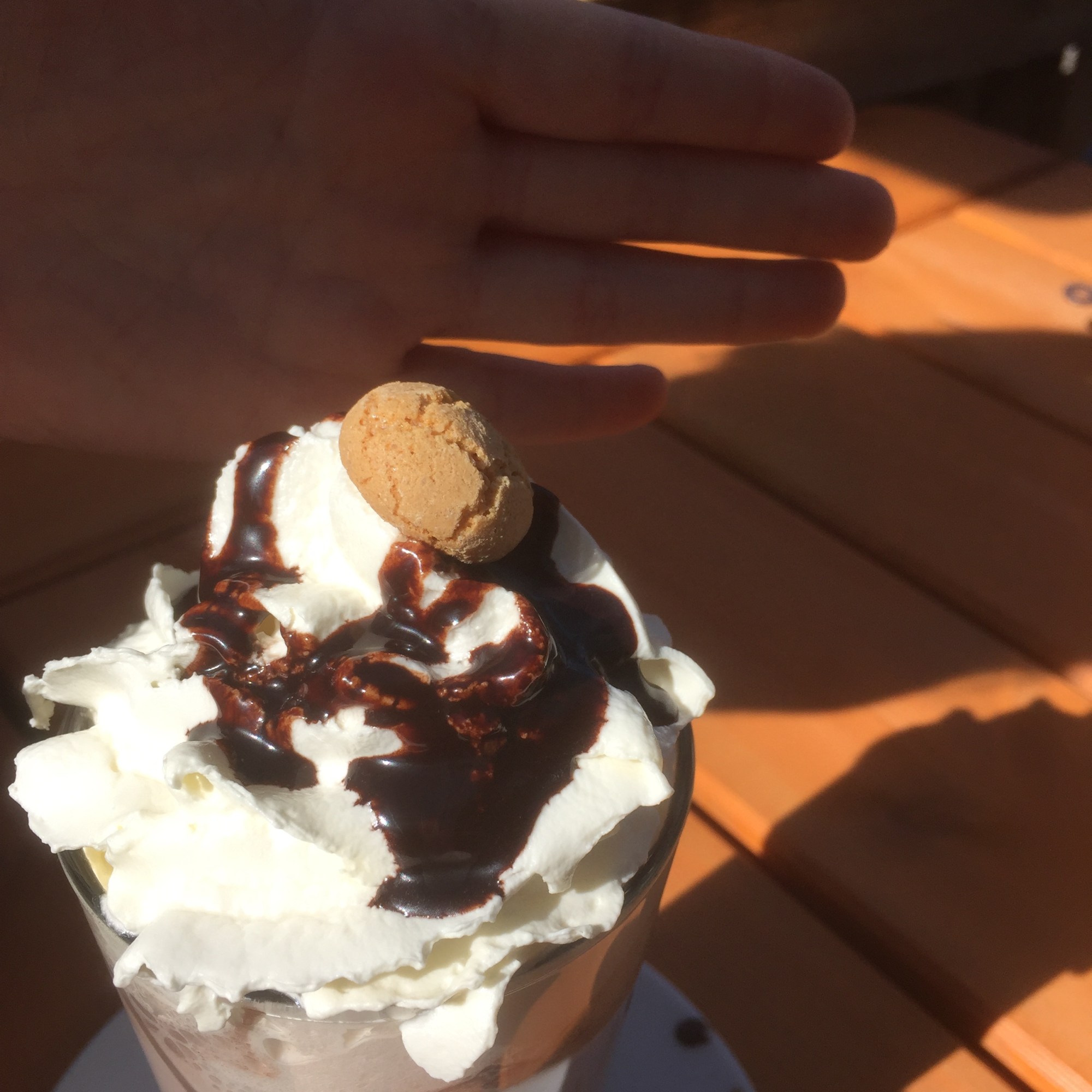 [Im Frühstückscafé. KM:] „Ich möchte heiße Schokolade. Mit Sahne.“