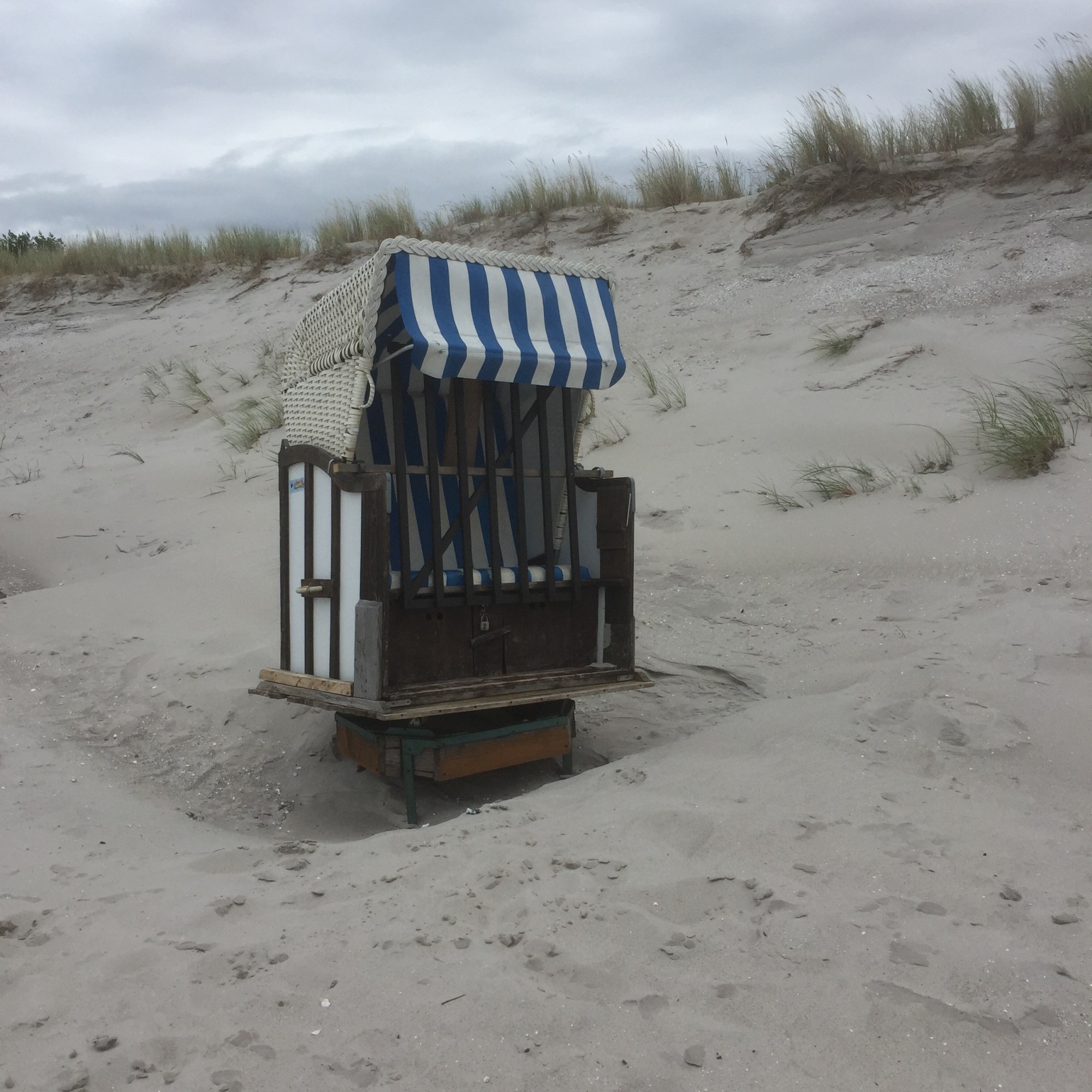 [Am Strand. folienstern:] „Ach, wie cool – ich wusste gar nicht, dass die Strandkörbe auf so Drehscheiben stehen!“
