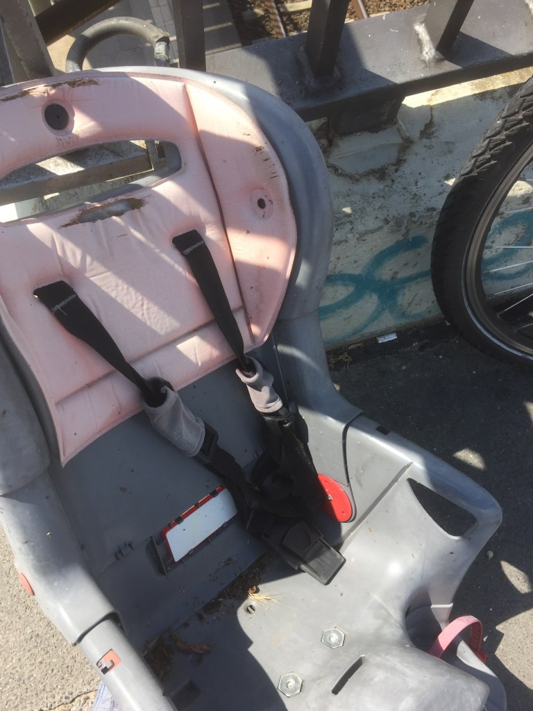 [Gleichzeitig in Berlin. folienstern will eine Kollegin vom Bahnhof abholen. Auf dem Weg:] „Häh? Warum liegt unser Fahrradkindersitz hier an der Bahn wie Müll rum? Ist doch unserer, oder? Ja, Kleber ist drauf. Komisch. Na, dann nehm ich ihn mal mit. Seltsam.“