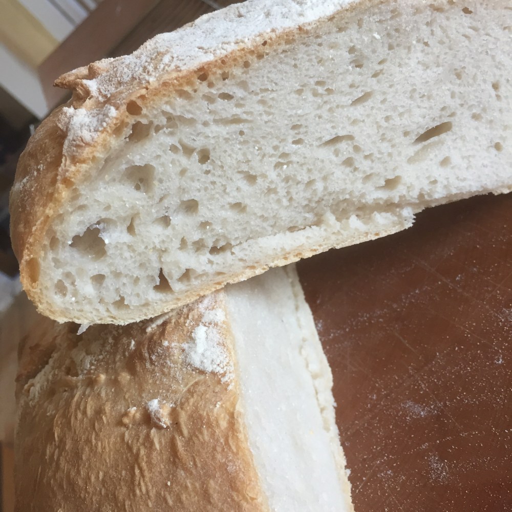 [folienstern:] „Oh, noch schön kühl. Dann geh ich mal in den Garten. Aber erst setze ich ein Brot an, damit ich etwas von dem Lievito Madre aufbrauchen kann. Ich hab zwar nur anderes Mehl, als die wollen, aber ich probier’s trotzdem mal… “
