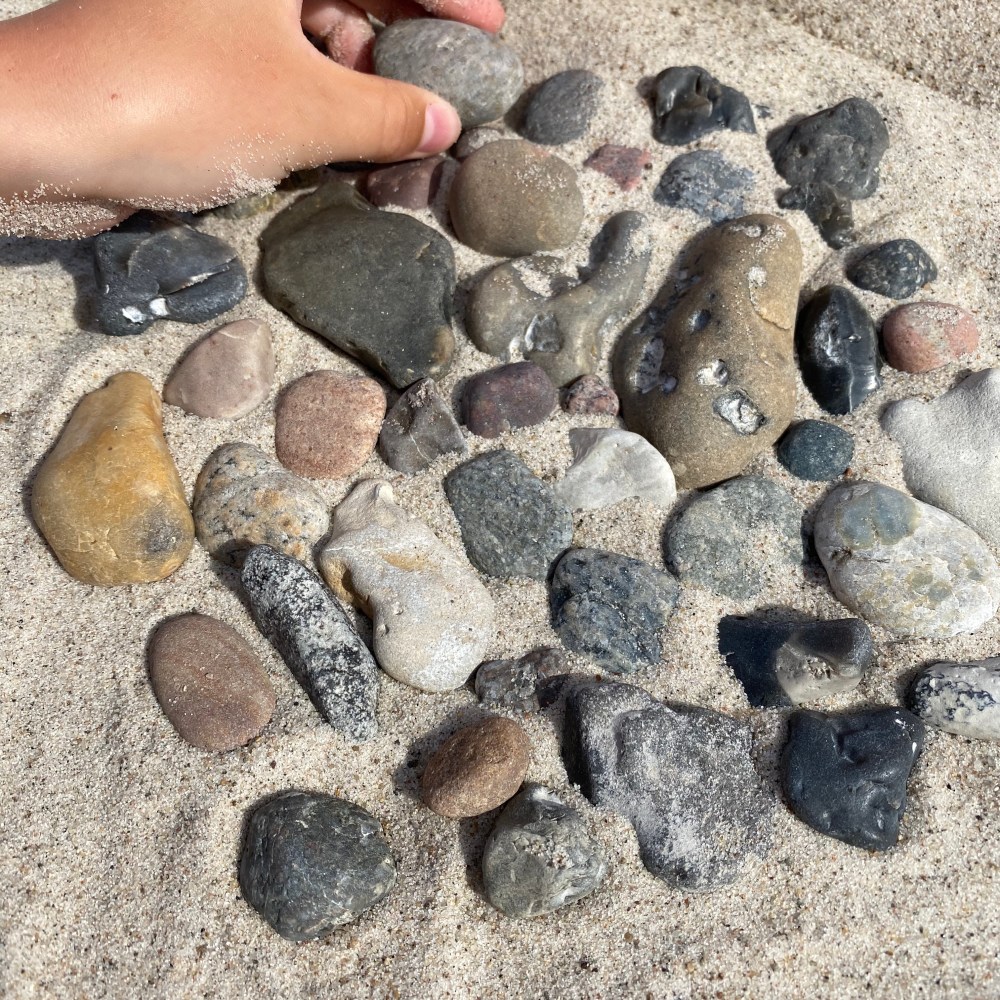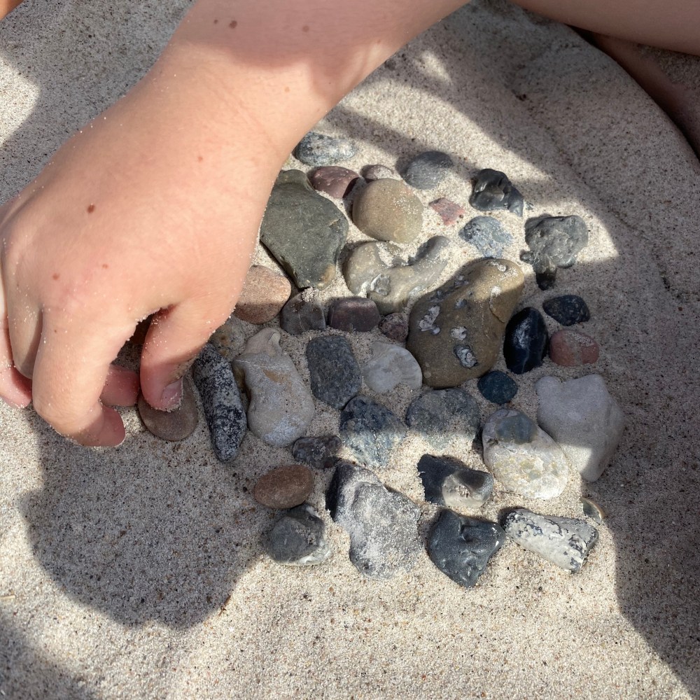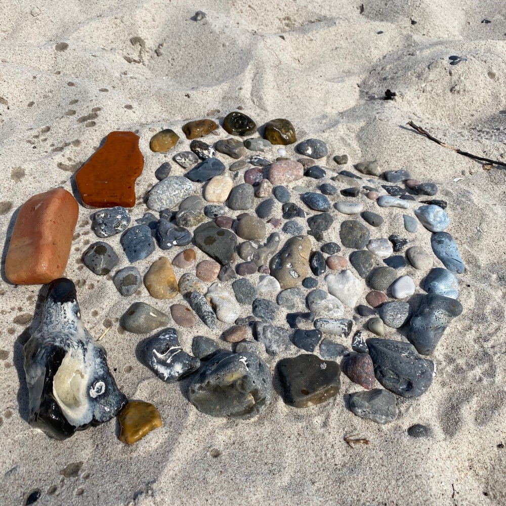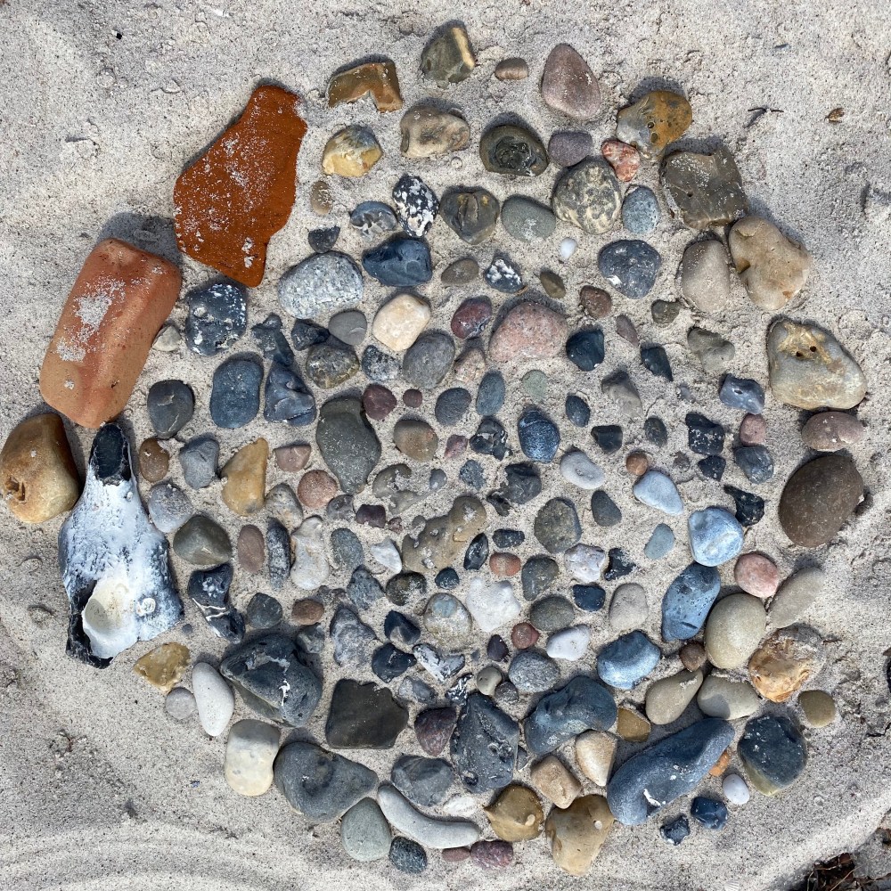[GJ:] „Machst Du noch ein Foto von unserem Steinmosaik? Und dann suchen wir jeder die Steine raus, die wir mitnehmen wollen.“