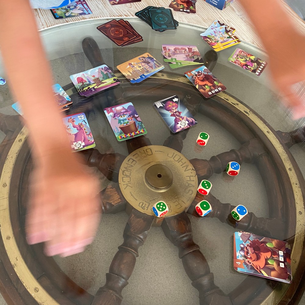 [GJ, KM:] „Wartet kurz, wir müssen erst noch die Runde Würfelkönig zu Ende spielen!“