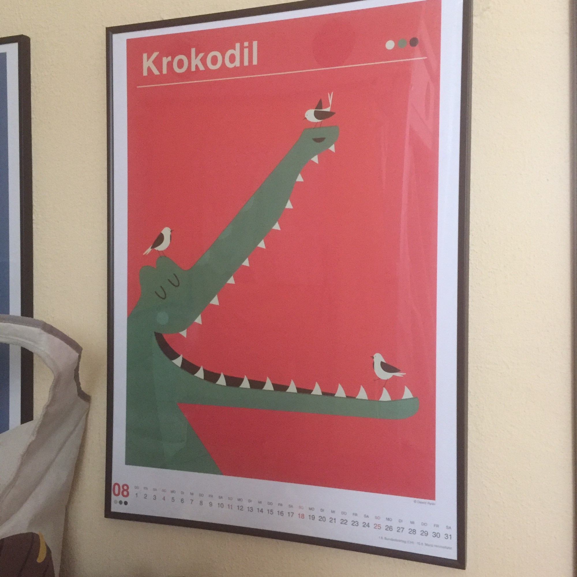 [folienstern:] „Jetzt wollte ich die Sommerbilder aufhängen – Juli, August, September. Guck mal – Flamingo, Krokodil, Tiger.“