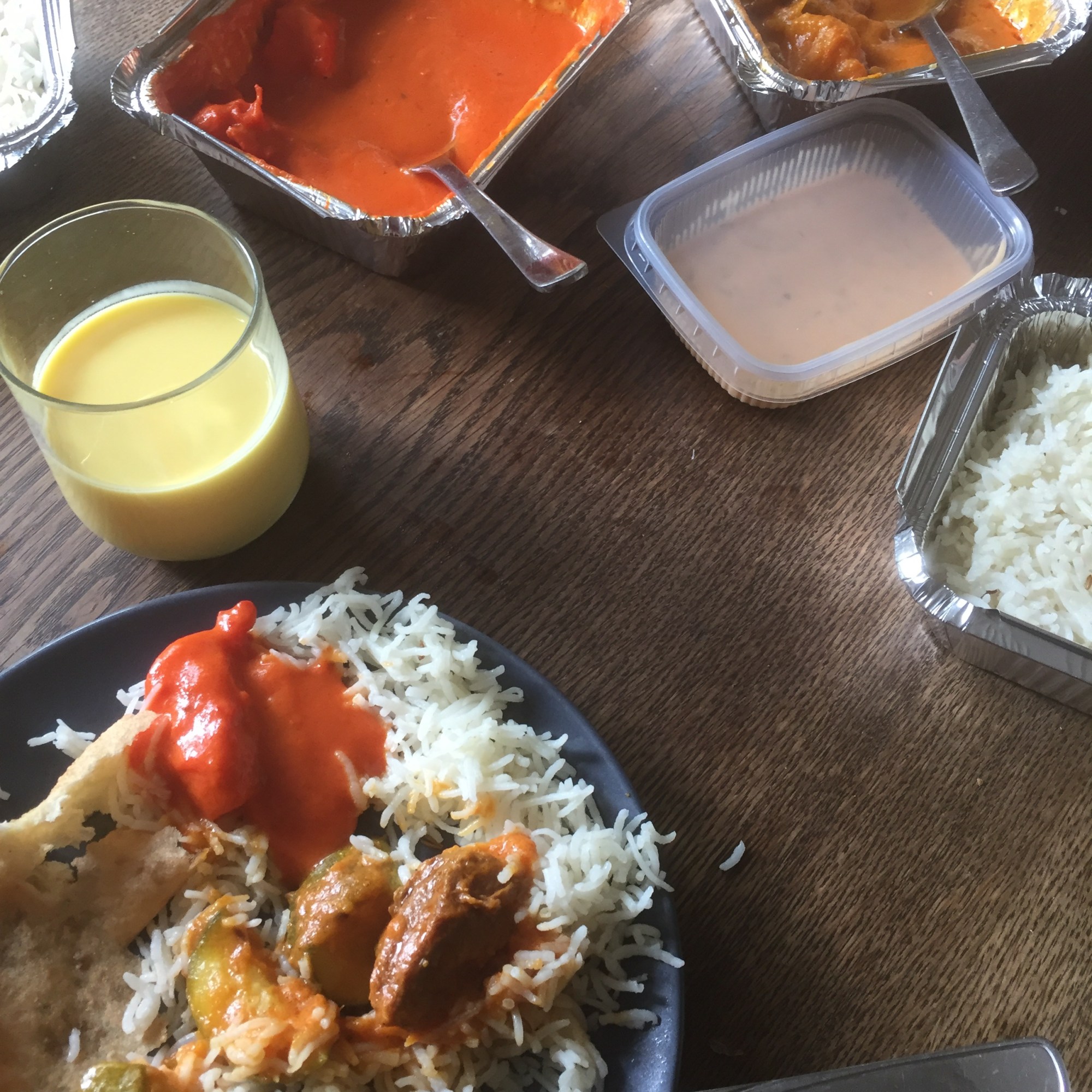 [Etwas später. GM:] „Das Essen ist da! Und sie haben uns Mango-Lassi geschenkt!“
