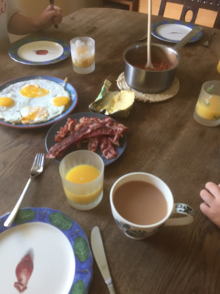 [Etwas später. Kinder:] „Hmmm, englisches Frühstück!“