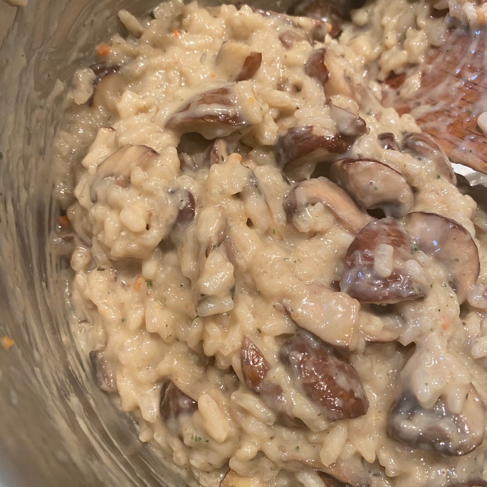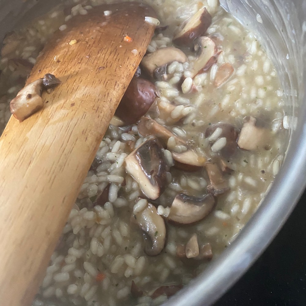 [kneteeis:] „Hm. Na gut. Weißt Du was? Ich mache Pilzrisotto. Das dauert sowieso eine ganze Weile, und bis es fertig ist, hast Du vielleicht auch Hunger.“