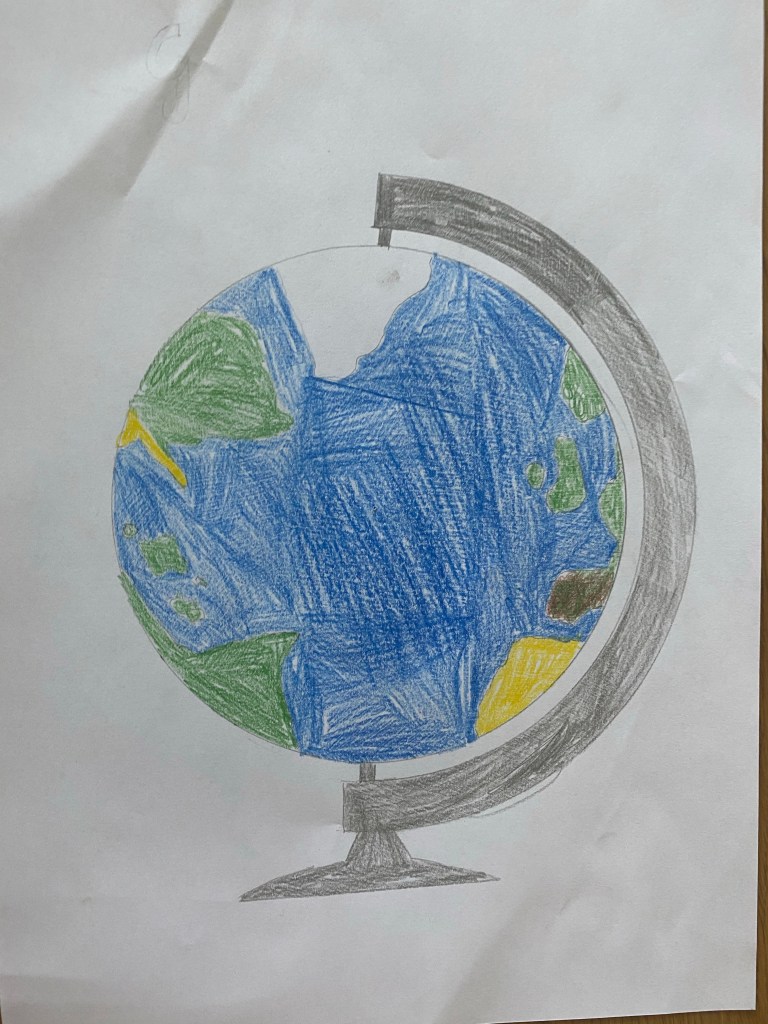 [GJ:] „Jetzt mache ich als erstes das Deckblatt für meine Geographie-Mappe.“