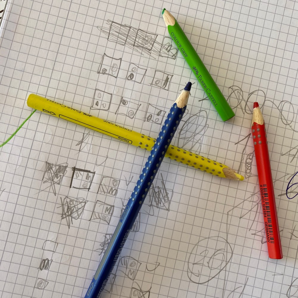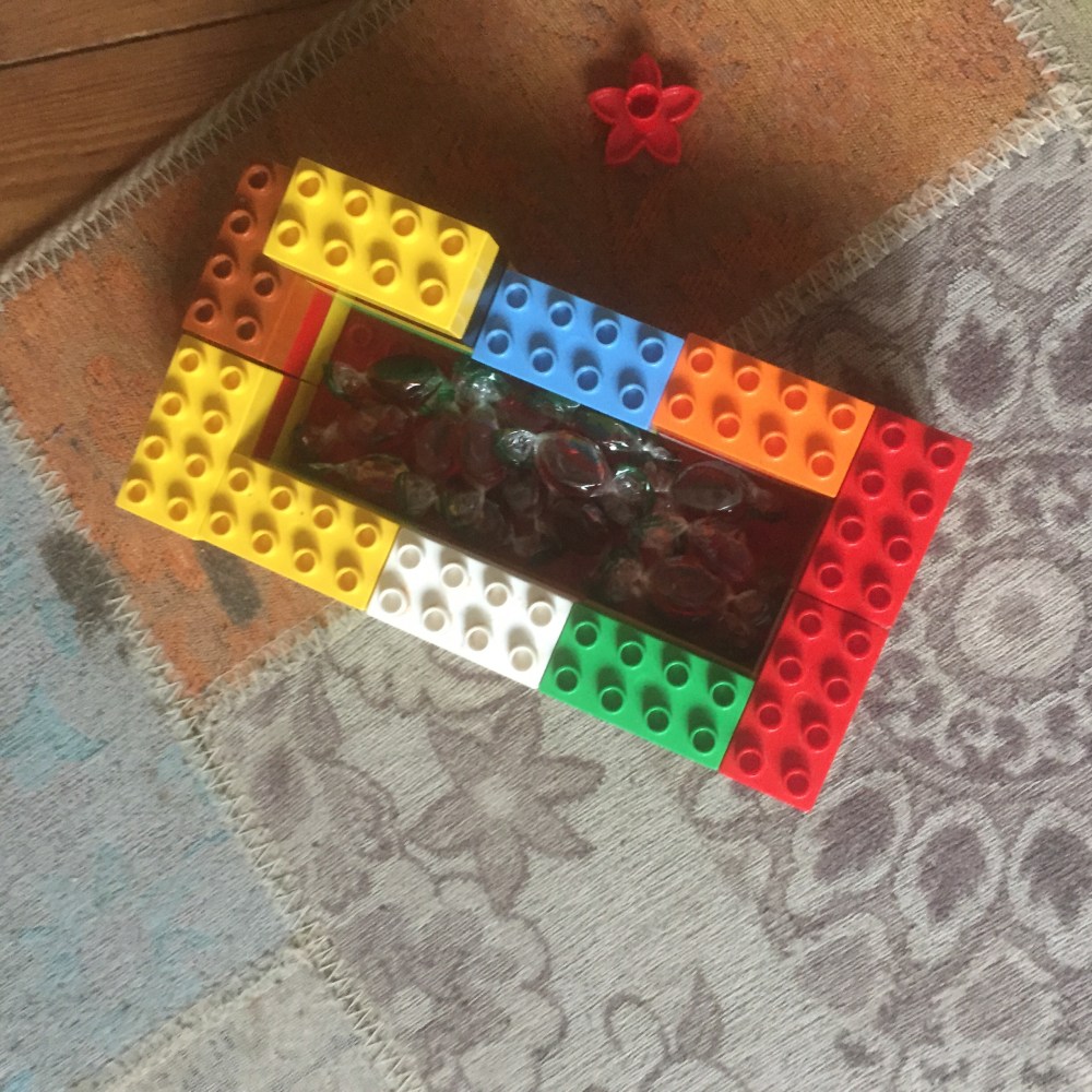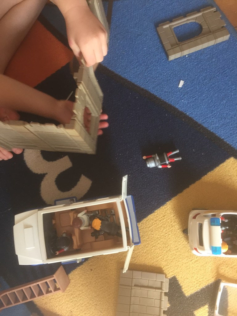 [KJ:] „Ich baue jetzt eine Burg. Wie gut, dass wir hier Teile mit so Dreiern haben, dann passt das gut mit der Burg!“