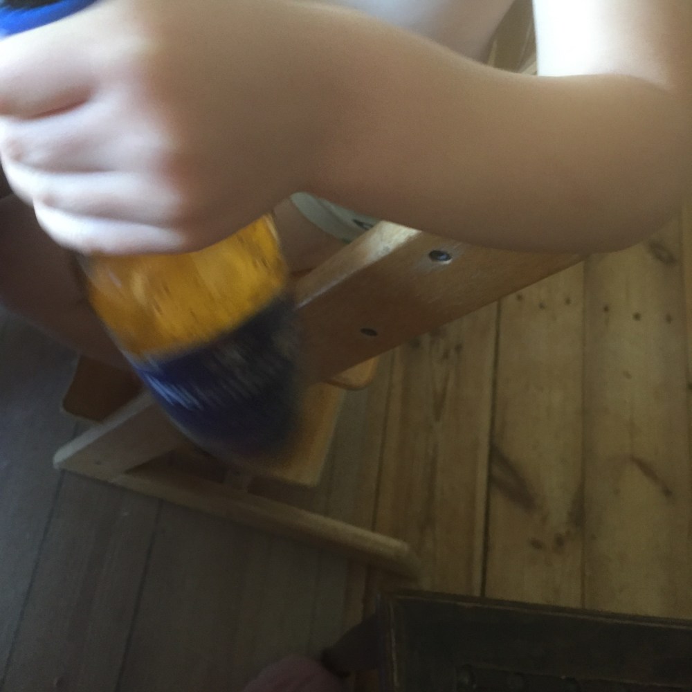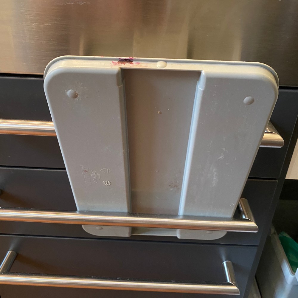 [Kurz darauf. GJ:] „Guck‘ mal: Ich habe auch noch einen Mülleimerdeckelhalter erfunden!“