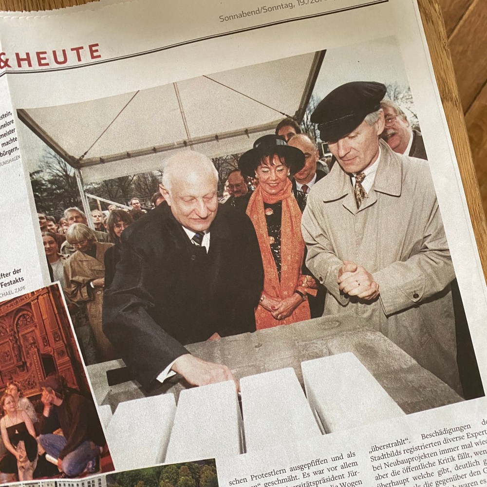 [kneteeis:] „Ach, guck‘ mal, wie nett! Extra zu foliensterns Geburtstag ist heute ein Foto in der Zeitung, auf dem im Hintergrund unsere Mutter mit drauf ist!“
