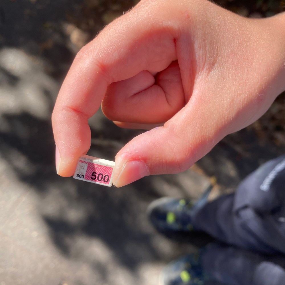 [Kurz darauf auf der Straße. GJ:] „Warte – guck‘ mal: Ich habe 500 Euro gefunden!“