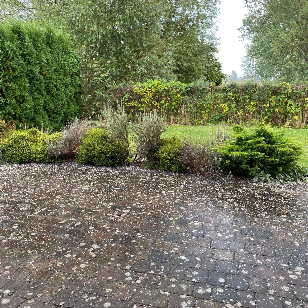 [Kurz darauf. kneteeis:] „Ach Du je – jetzt hagelt es auch noch!“