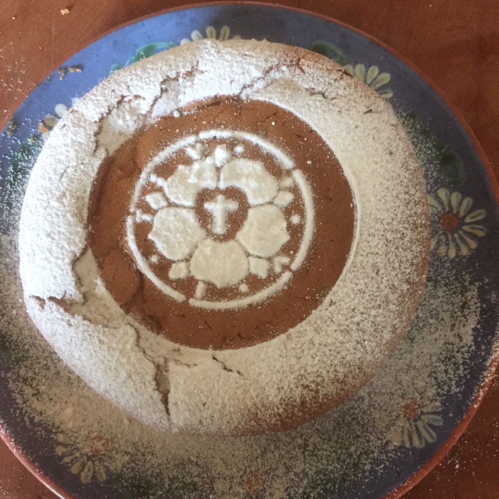 [folienstern:] „Klar. Willst Du die Lutherrosenschablone nehmen? Weil Reformationstag ist?“