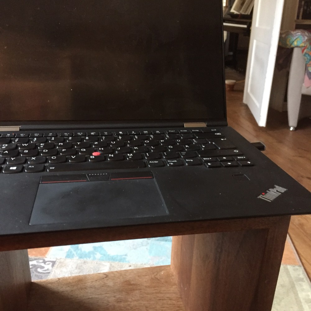 [folienstern:] „Hm – wie baue ich mir denn den Computer jetzt für den Vortrag auf Zoom gleich auf? Vielleicht mit zwei Tischen übereinander?“