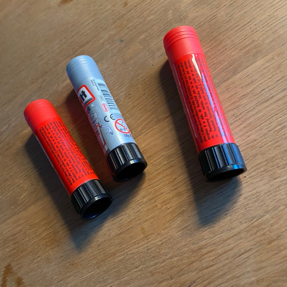 [GJ:] „Hast Du neue Klebestifte gekauft?“