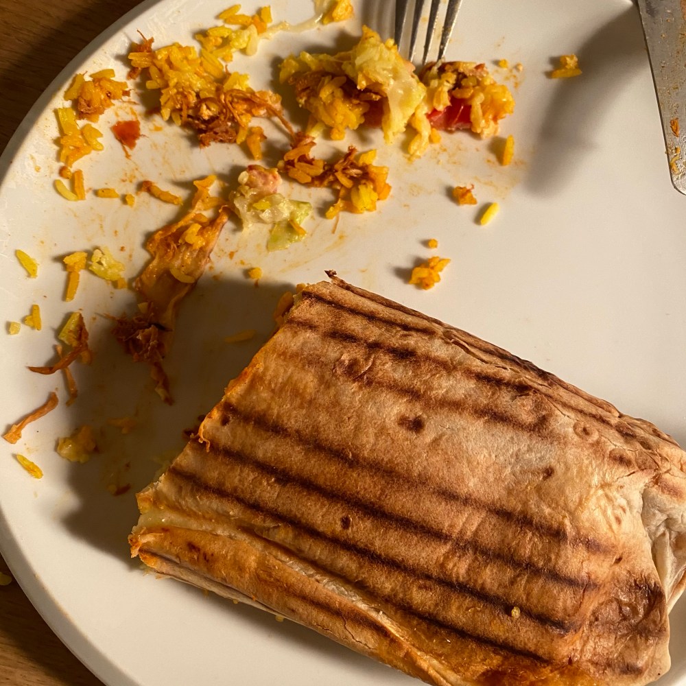 [kneteeis:] „Wenn ich das richtig gesehen habe, hast Du auch außer dem Teil vom Burrito noch zwei Quesadillas verdrückt, oder?“