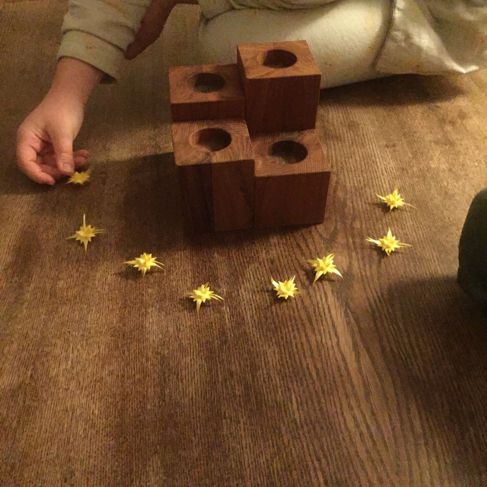 [Etwas später. folienstern:] „Uff – es ist schon ganz schön spät. Dann machen wir jetzt nur die Adventskranz & die andere Deko machen wir morgen nach dem Frühstück, ja?“
