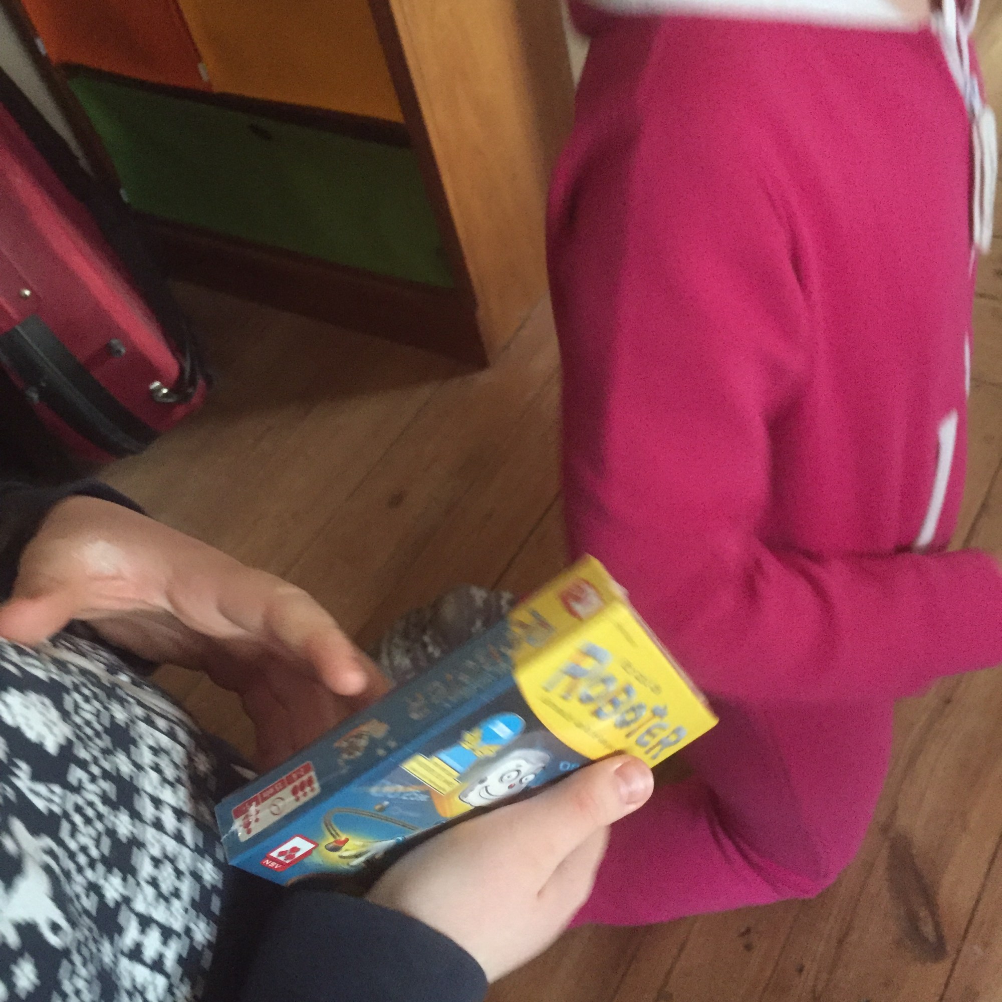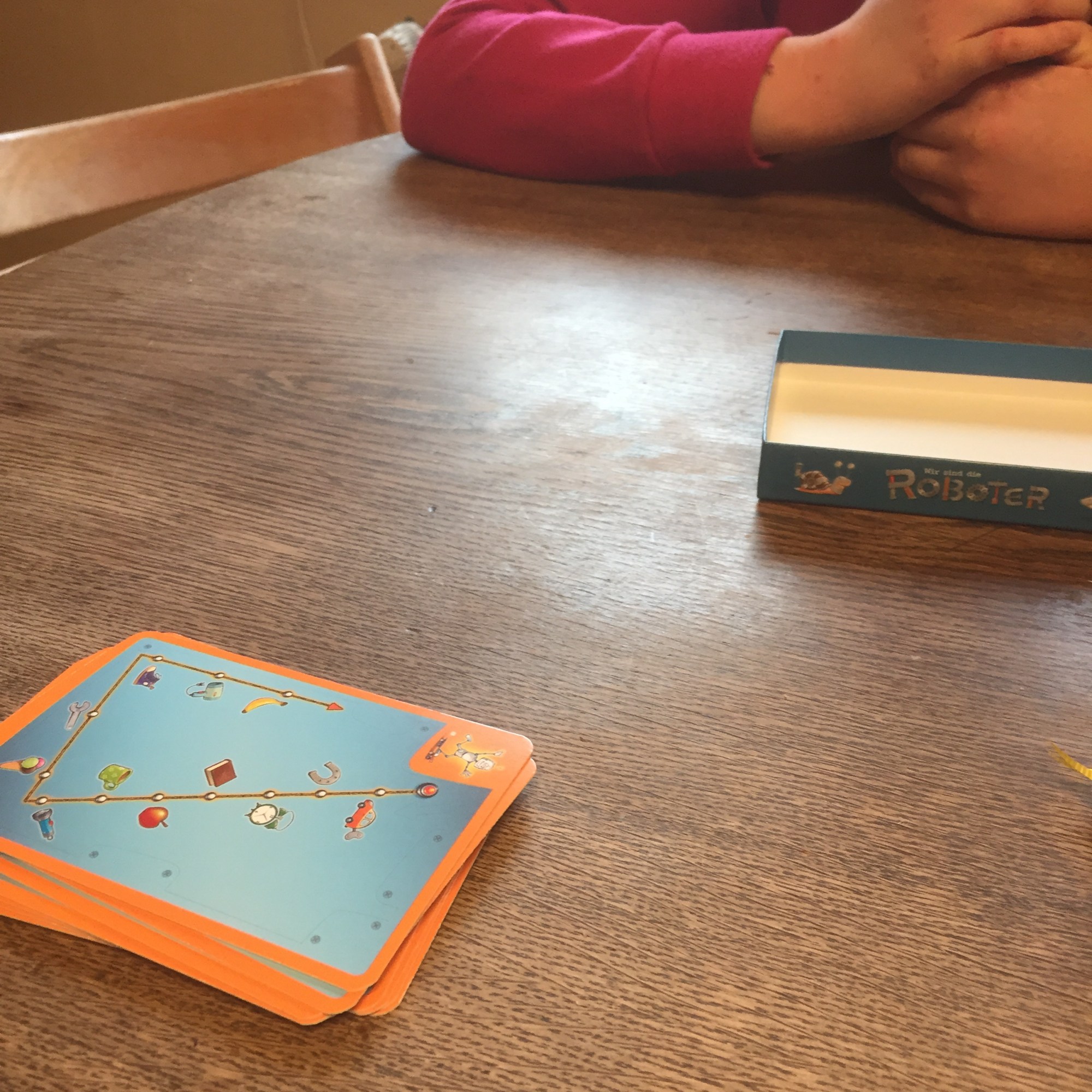 [folienstern:] „Na, dann mach doch jetzt die Schatzsuche fertig, wir machen Kuchenzeit, und dann die Schatzsuche!“