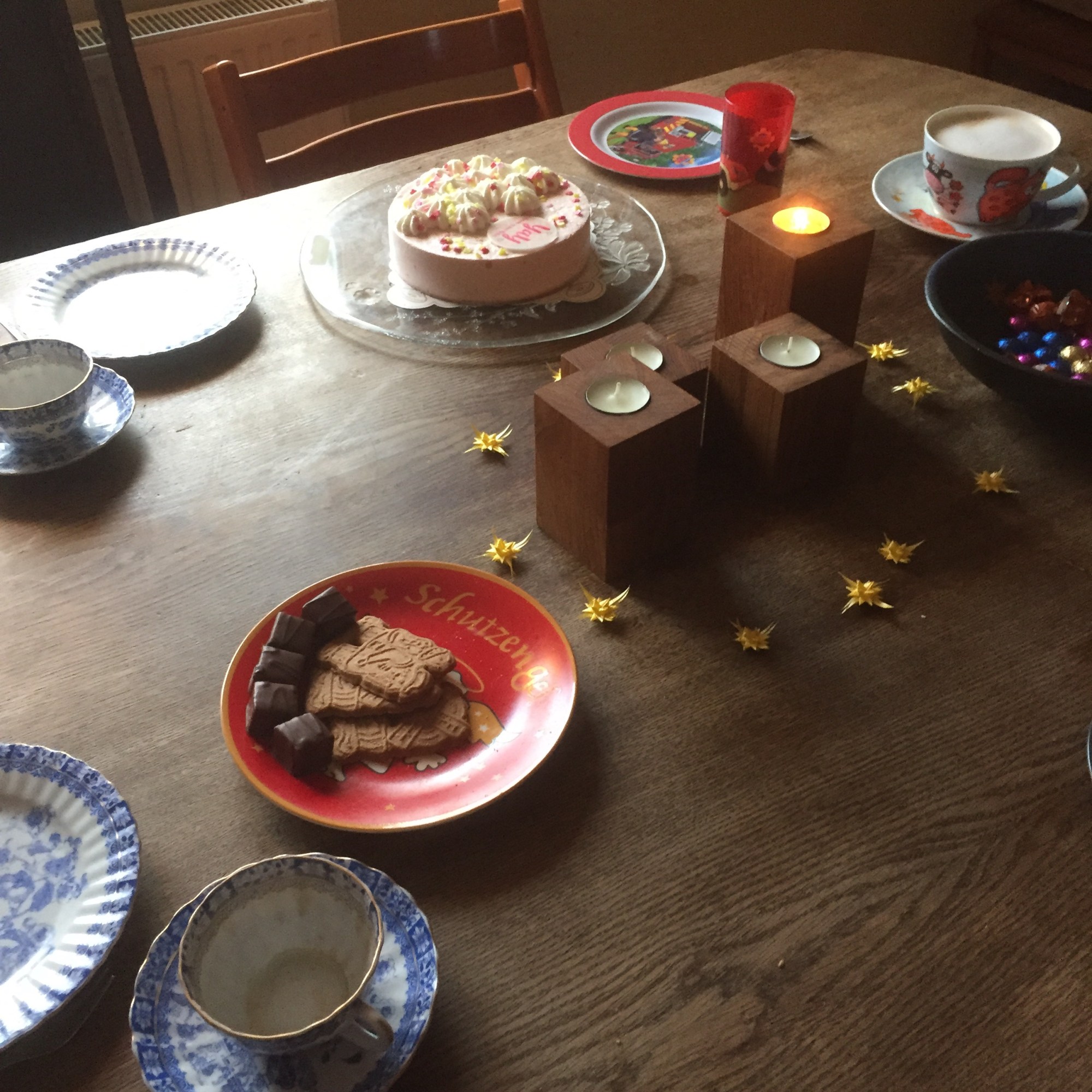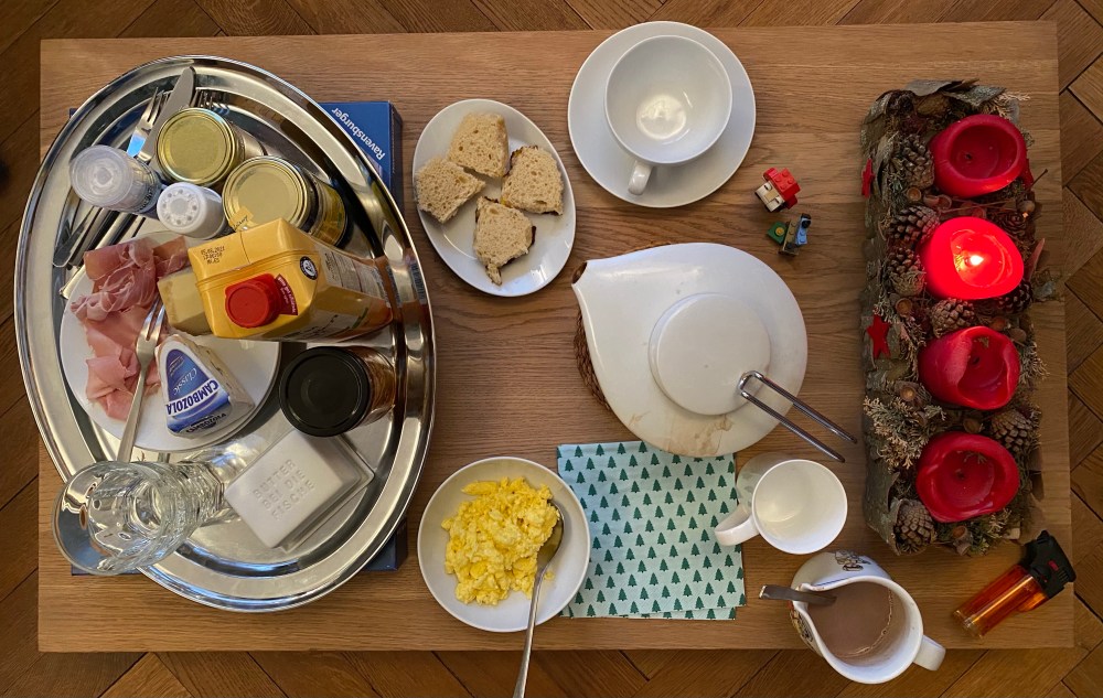 [GJ:] „Heute müssen wir im Wohnzimmer frühstücken, weil da der Adventskranz steht!“