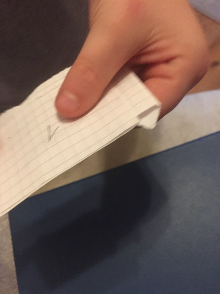 [KJ:] „Jetzt mache ich auch eine Schatzsuche! Mama, schreibst Du mir? Die 1 kann ich schon. Aber die 2 nicht. Aber schreib mir jetzt auch die 1.“