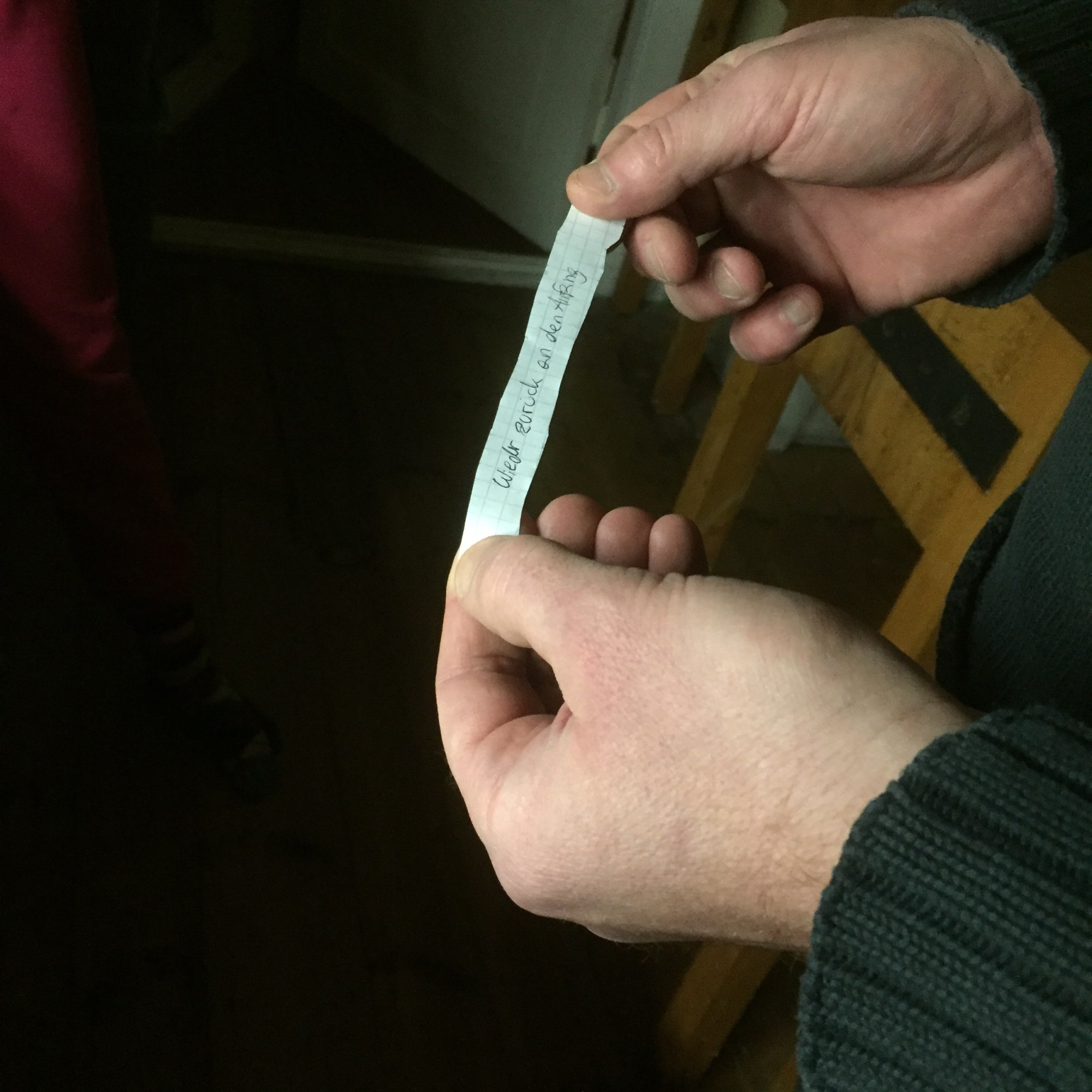 [KM:] „Das heute morgen war ja nur ein bisschen versteckt. Ich mache Euch jetzt eine Schatzsuche. Und die machen wir dann.“