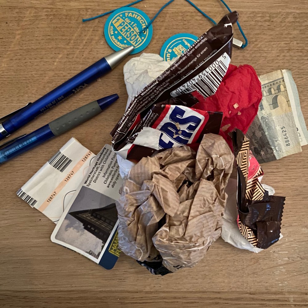 [GJ:] „Warte… – Oh, nee – das sind nicht meine Handschuhe. Aber einiges anderes Zeug aus dem letzten Winter…“