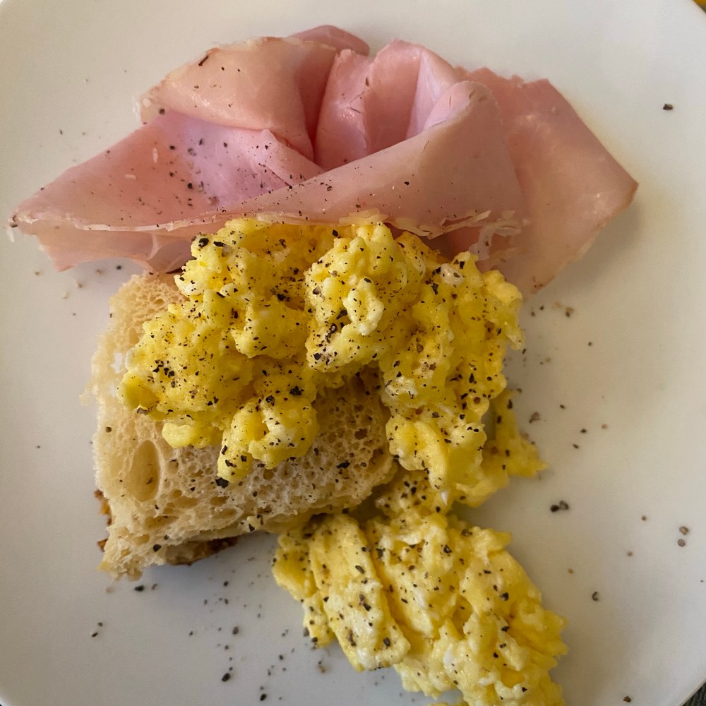 [Kurz darauf. kneteeis:] „Hmmm, das sieht lecker aus. Ich mache mir als erstes ein Schinkenbrötchen mit Rührei.“