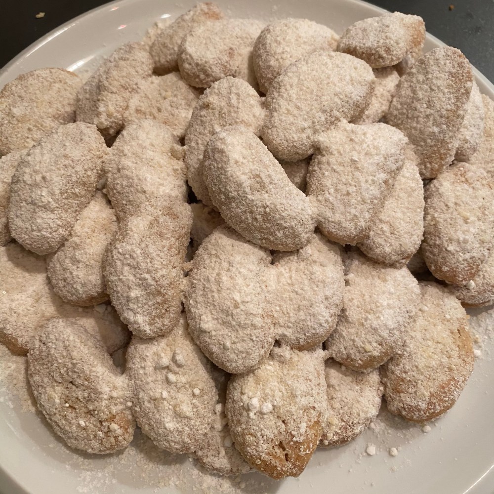 [kneteeis:] „Machen wir jetzt noch eine Sorte Plätzchen zusammen? Der Teig für die Vanillekipferl ist schon im Kühlschrank.“