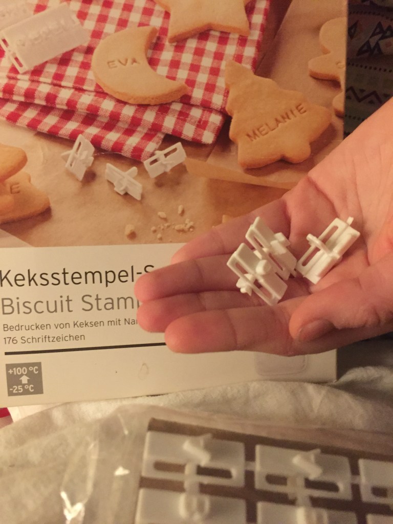 [GM:] „Guck mal! Stempel!! Keksstempel! Können wir heute Kekse backen und die stempeln?“