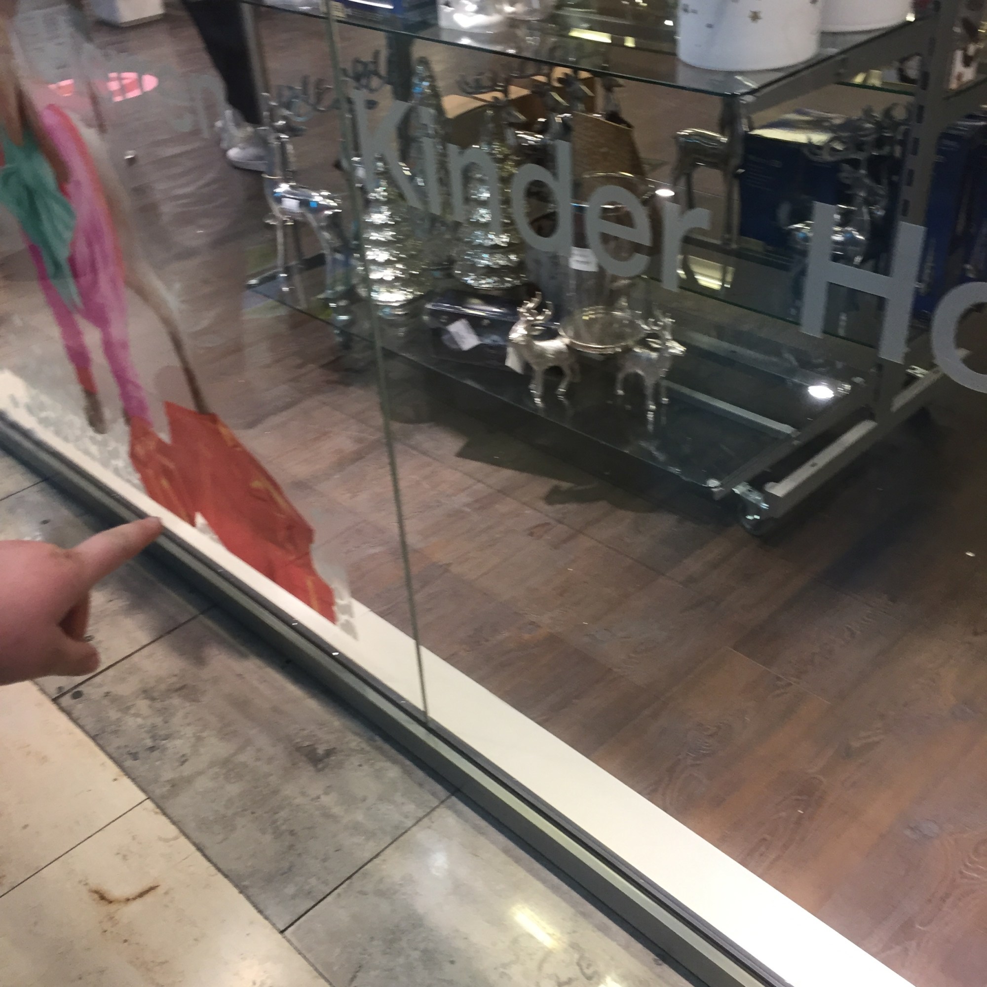 [Im Einkaufszentrum. KM:] „Ohh, guck mal, die armen Hirsche! Die müssen das ganze schwere Glas tragen!“