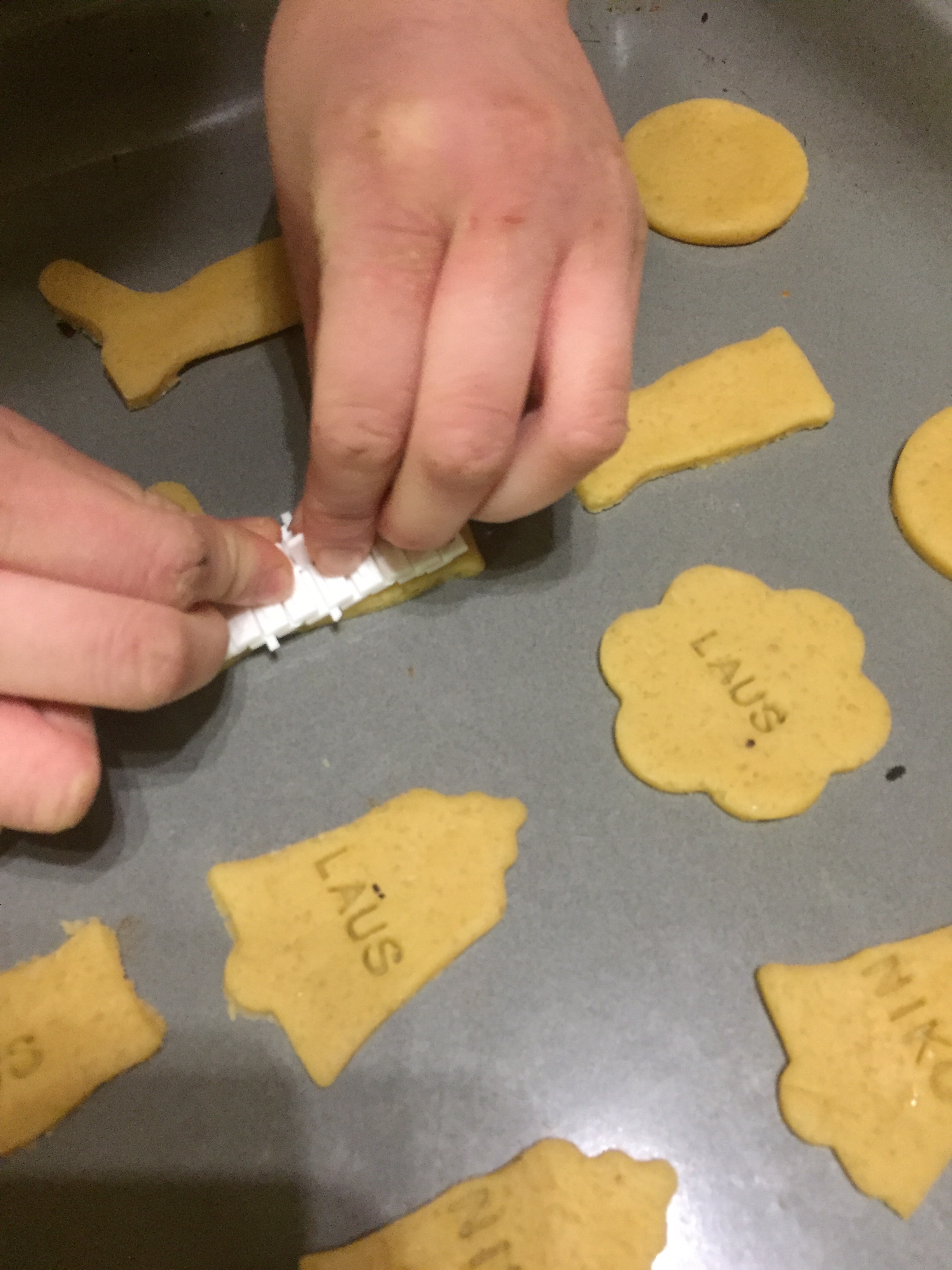 [folienstern:] „Gute Idee – die Kekse sind nur etwas schmal, da müssen wir Niko- und Laus schreiben.“