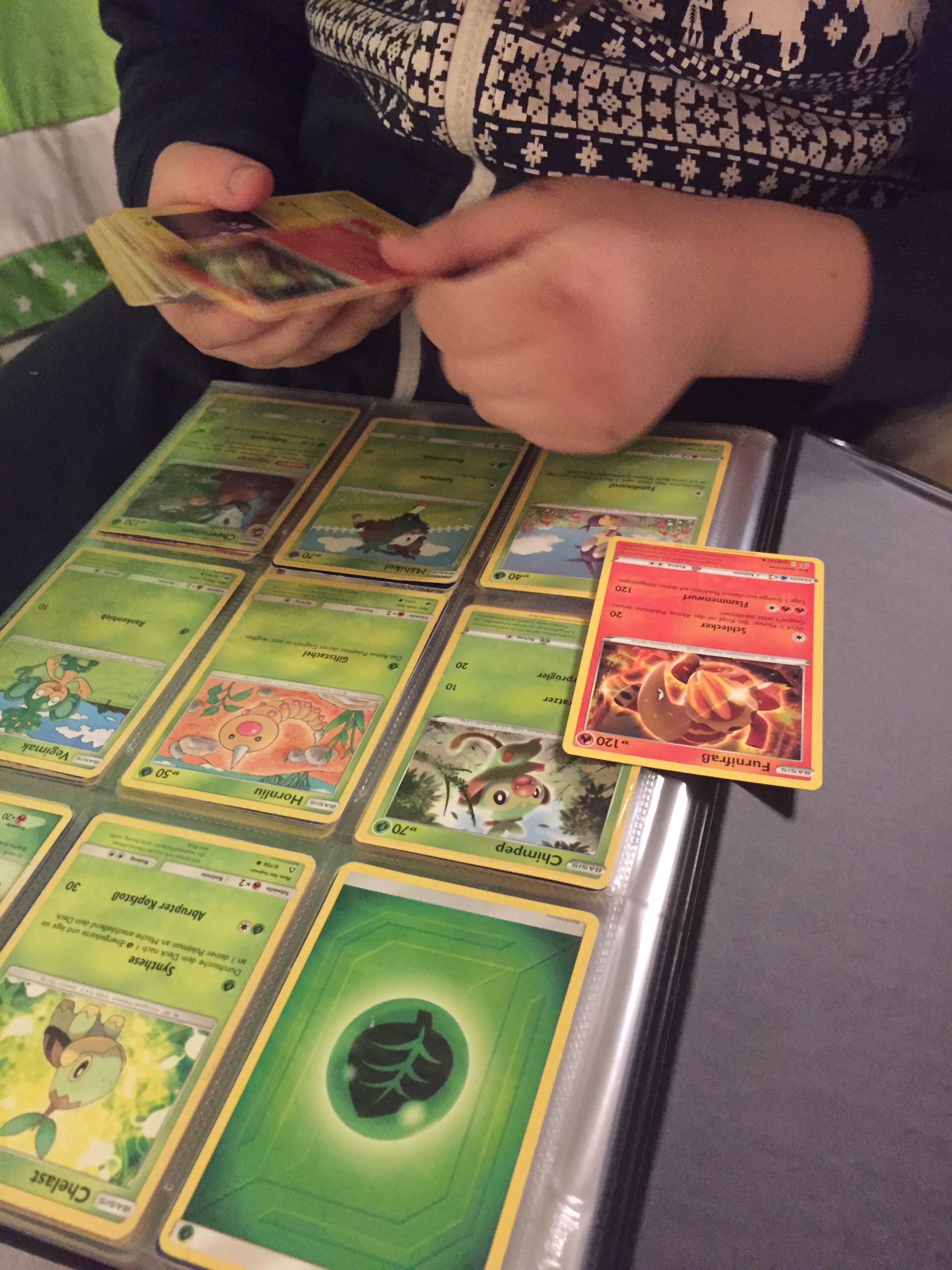 [KM:] „Ooooh, 50 Pokémon-Karten. Und ich hab noch fast keine davon. Die sortier ich in mein neues Album!“