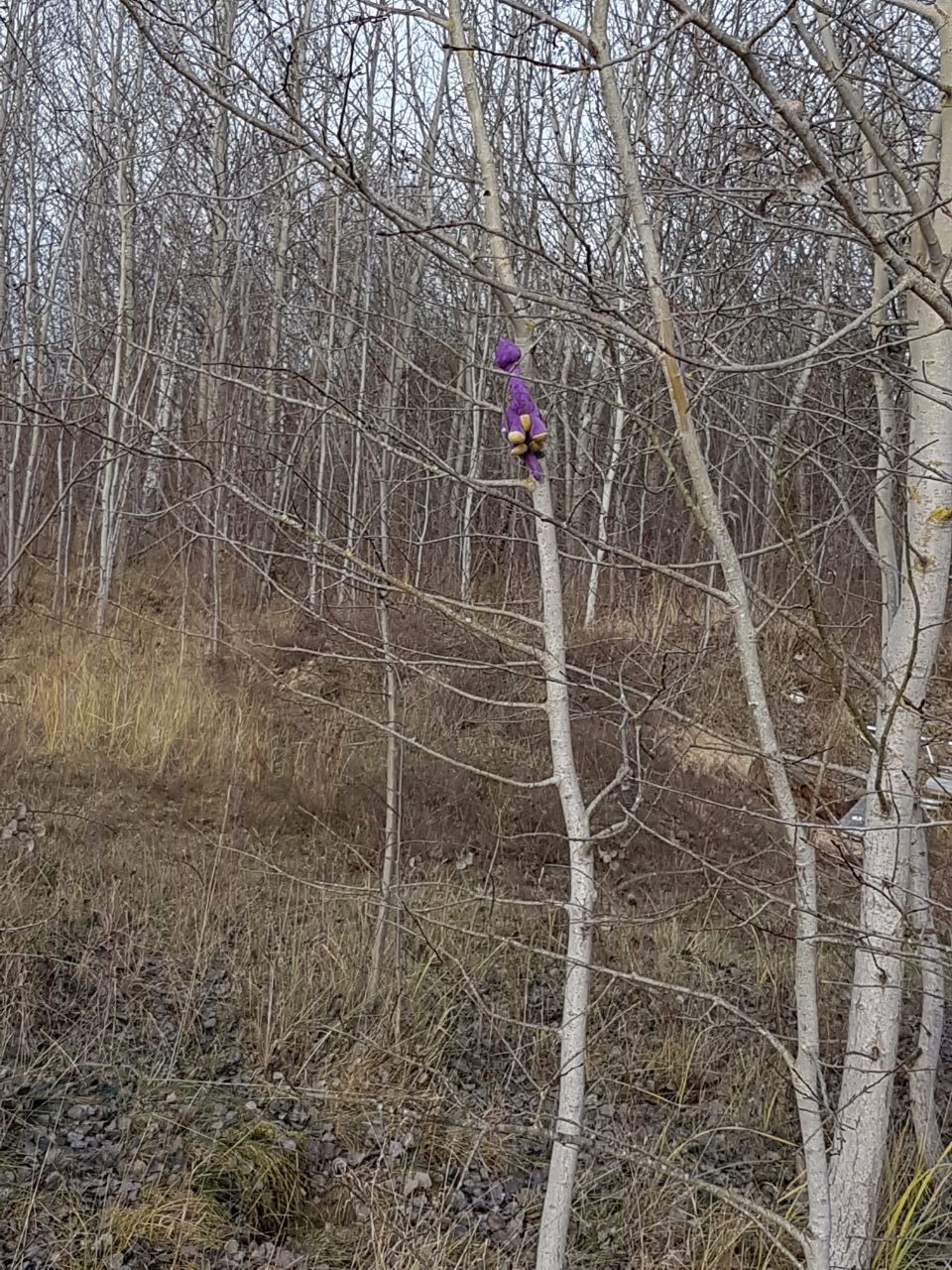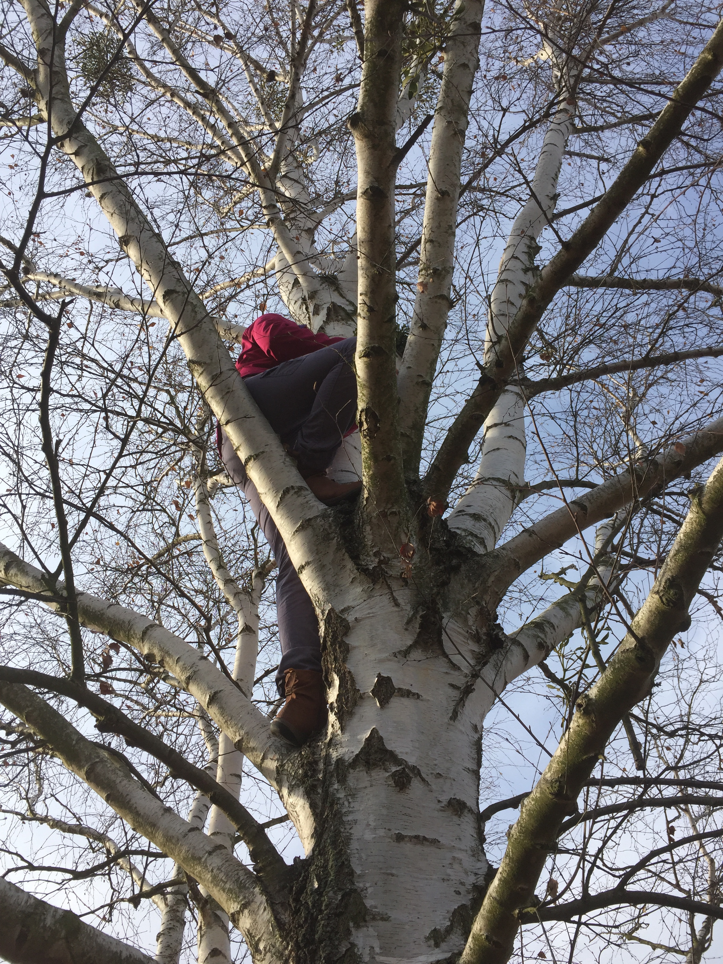 [Noch etwas später. KM:] „Ich hab’s gesehen! Für den Cache muss man klettern!“
