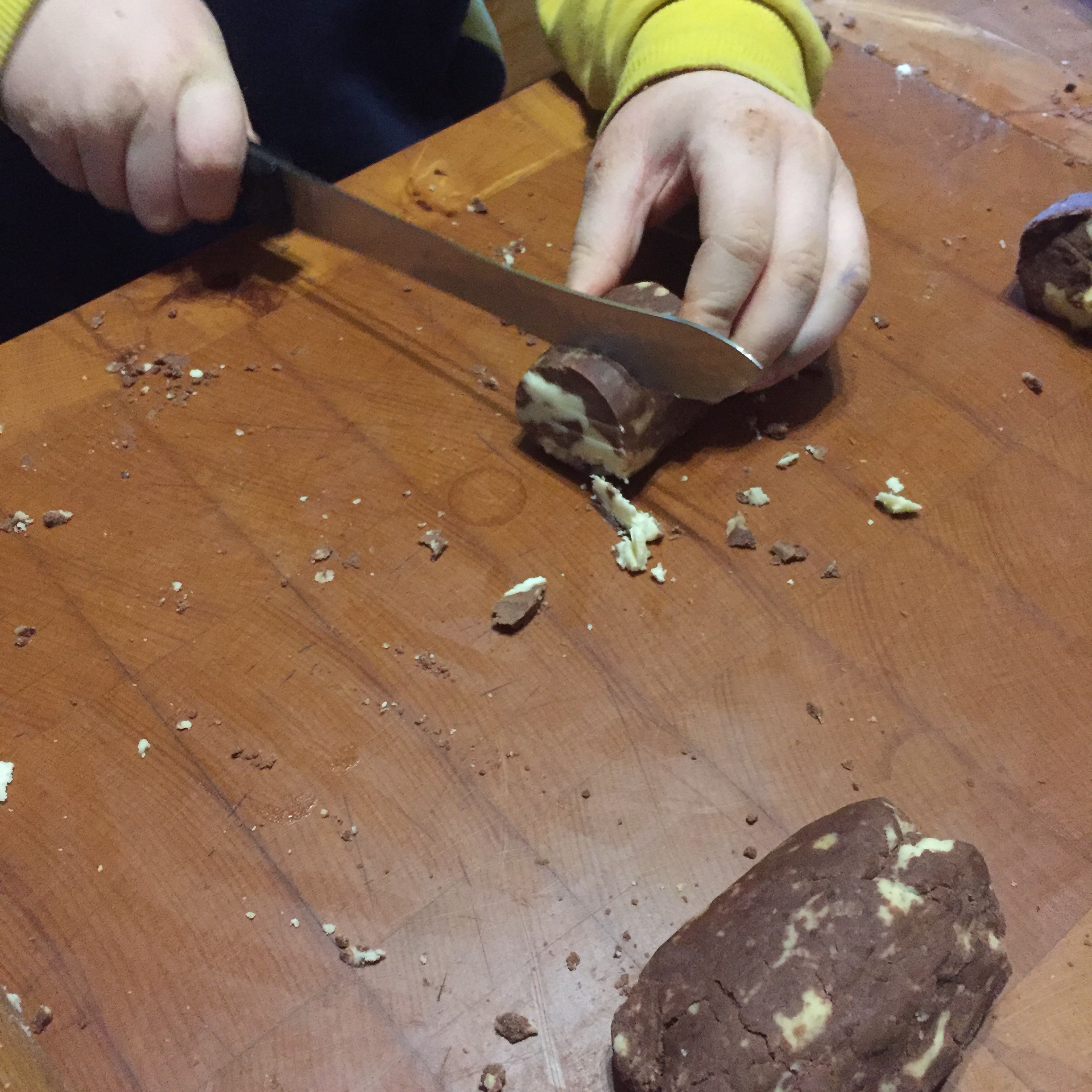 [KM:] „Ohhh, hast Du Kekse gebacken? Ich möchte auch schneiden.“