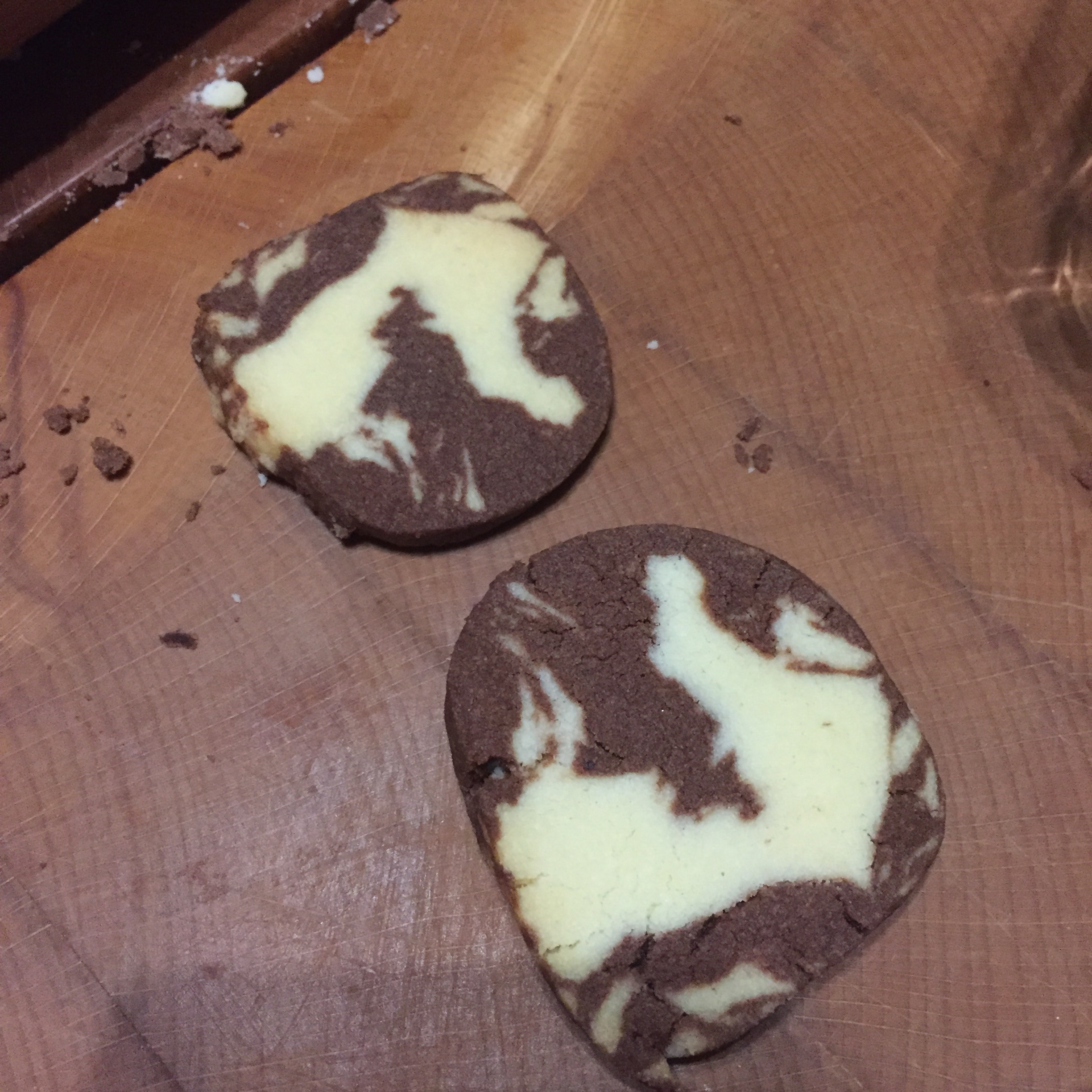 [folienstern:] „Ja, aber bloß das marmorierte Schwarz-Weiß-Gebäck, die schönen Formen hab ich nicht hinbekommen mit dem Teig.“