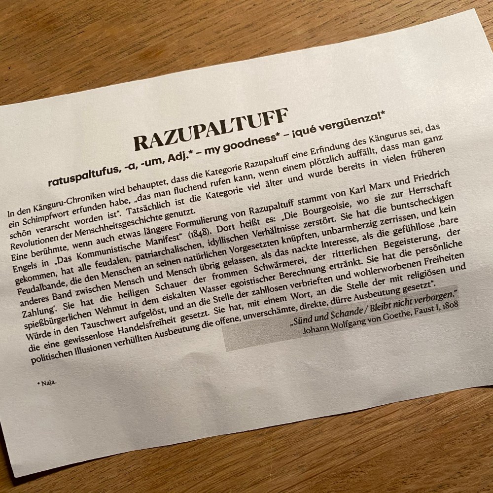 [GJ:] „In meinem Adventskalender war übrigens heute ‚Razupaltuff‘.“