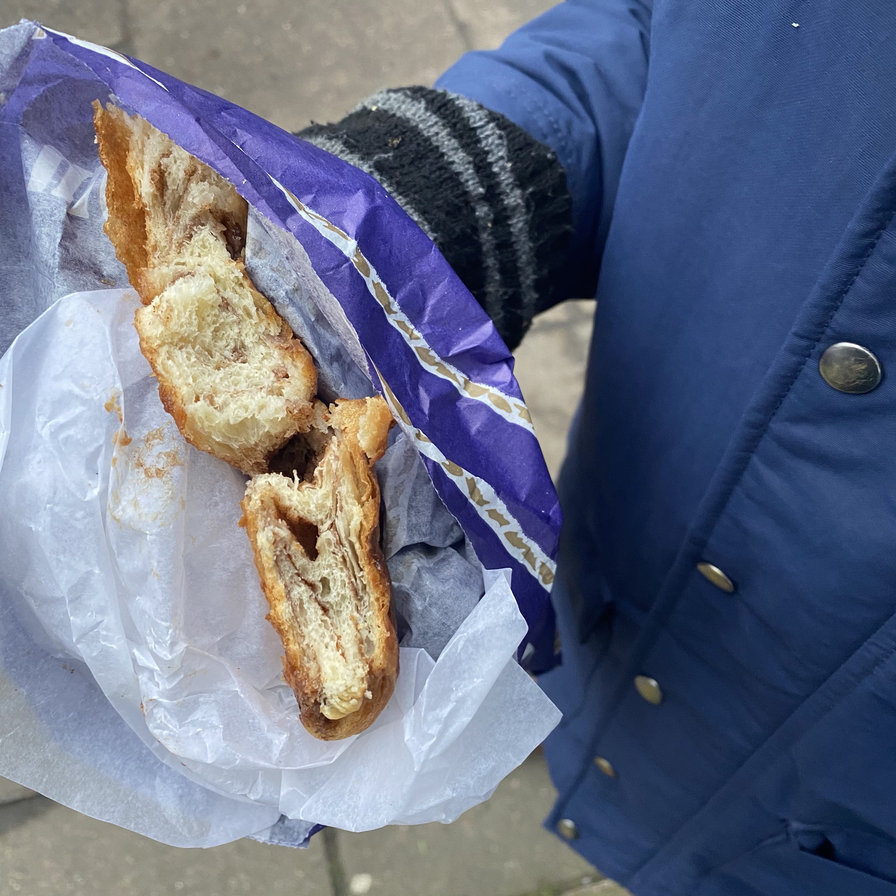 [Noch etwas später. GJ:] „Puh, jetzt habe ich Hunger. Aber zum Glück ist da gleich die Kleine Konditorei – da können wir ein Franzbrötchen kaufen und uns gleich noch einen passende Aufgabe überlegen!“